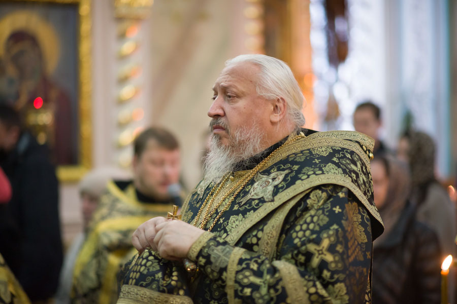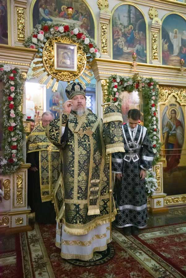 Высокопреосвященнейшему сослужили: секретарь Гомельской епархии протоиерей Георгий Алампиев и духовенство собора.