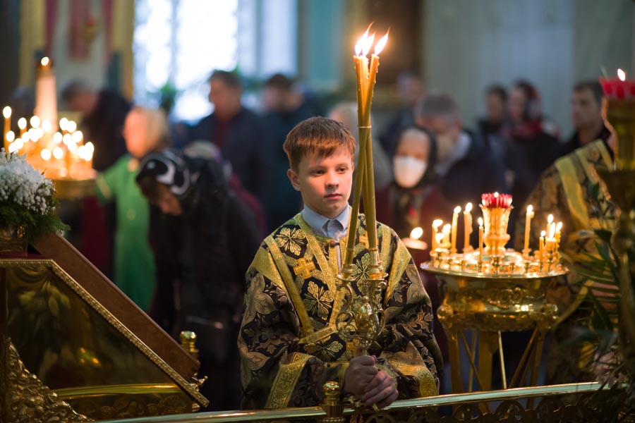 В канун Великой субботы, 22 апреля 2022г., Высокопреосвященнейший Стефан, архиепископ Гомельский и Жлобинский, совершил утреню с чином погребения Плащаницы Господа нашего Иисуса Христа в Петро-Павловском кафедральном соборе г.Гомеля.