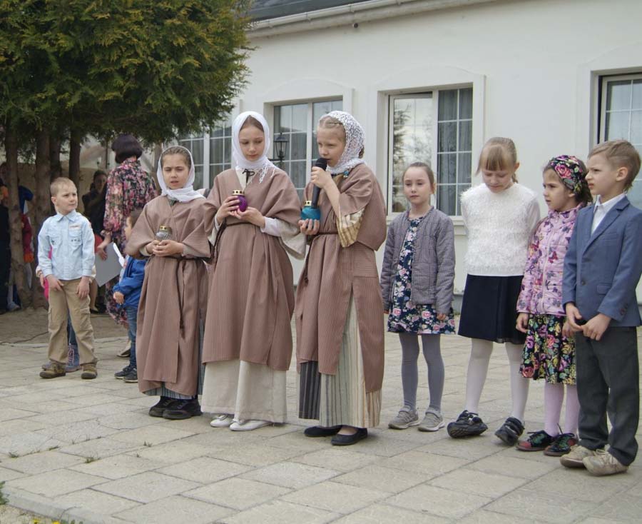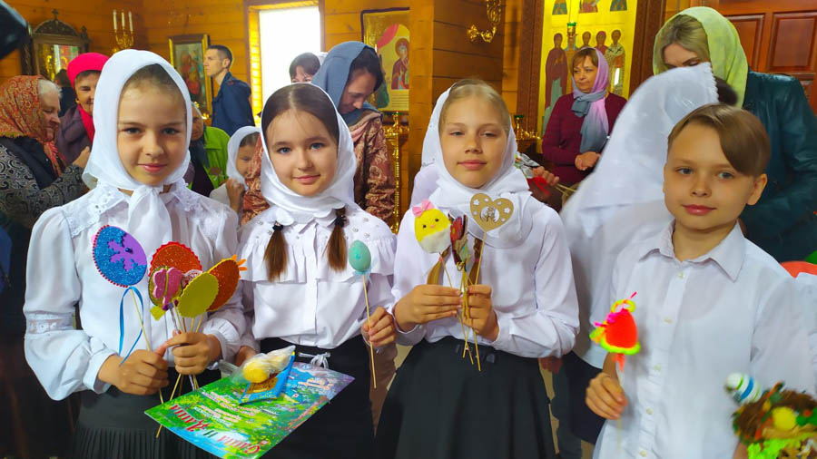 Вокруг торжество и радость, в воздухе царит аромат весны, а за окнами — Пасха. “Христос Воскресе!»— громко звучит во дворе храма свт. Василия Великого г. Жлобина. Благодаря талантам воспитанников Воскресной школы и чуткому руководству педагогов хореографические, вокальные и инструментальные номера мгновенно погрузили зрителей в праздничную атмосферу. Ребята из старшей группы разыграли сценку—притчу «История бабочки-огневки», которая ещё раз напомнила, что наше истинное предназначение — светлая жизнь в Царствии Небесном! В заключительной части концерта зрители насладились пением детского хора Воскресной школы. Юные вокалисты этого коллектива являются желанными гостями на православных мероприятиях не только прихода, но и города. В приветственном слове настоятель храма иерей Вячеслав Рябица ещё раз поздравил всех с Воскресением Христовым и выразил восхищение талантливыми и трудолюбивыми ребятами, подарившими тепло и радость зрителям. Завершился праздник чаепитием на свежем воздухе и общением в тёплом семейном кругу.