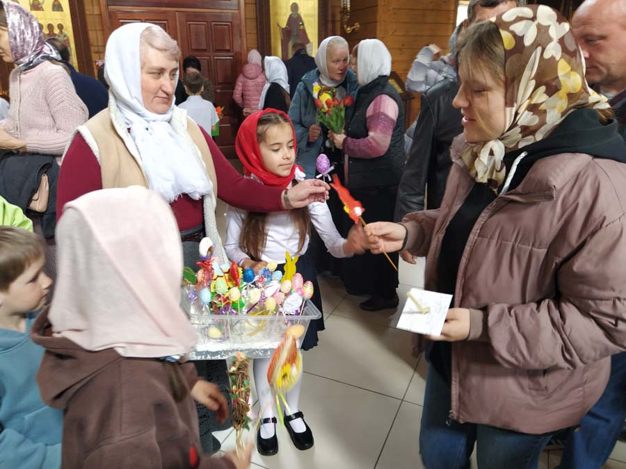 Пасхальная радость царила и в приходе храма святого преподобного Серафима Саровского в г.Жлобине. Умножить её помогли педагоги и учащиеся гимназии № 8 имени В.И.Козлова г.Жлобина. Совместно с учителями ребята 1-6 классов подготовили и исполнили музыкальные и поэтические поздравления со Светлым праздником Пасхи Христовой для прихожан храма и подарили всем пасхальные сувениры, изготовленные вместе с родителями. Учащихся и педагогов поздравил со светлым праздником Пасхи Христовой настоятель прихода протоиерей Леонид Михайловский, подарив сувениры и сладости. Такие встречи, организованные по инициативе директора гимназии Дашковской Светланы Петровны и протоиерея Леонида Михайловского в рамках сотрудничества, стали доброй традицией.
