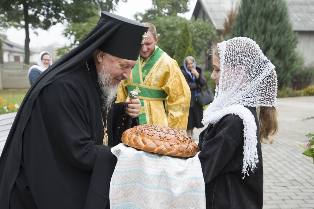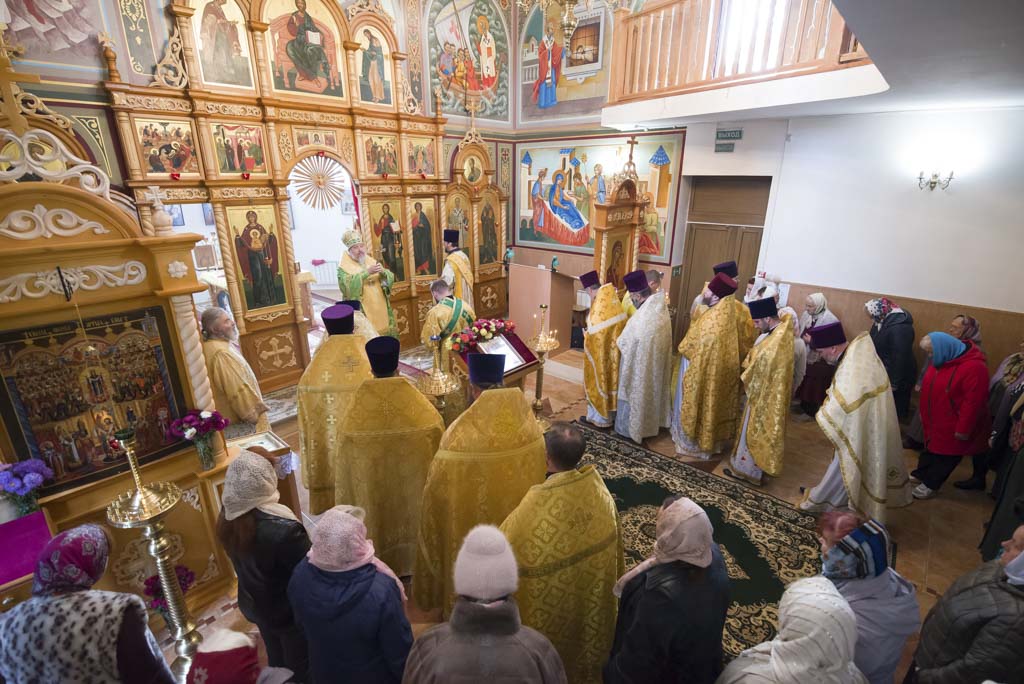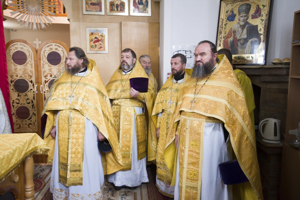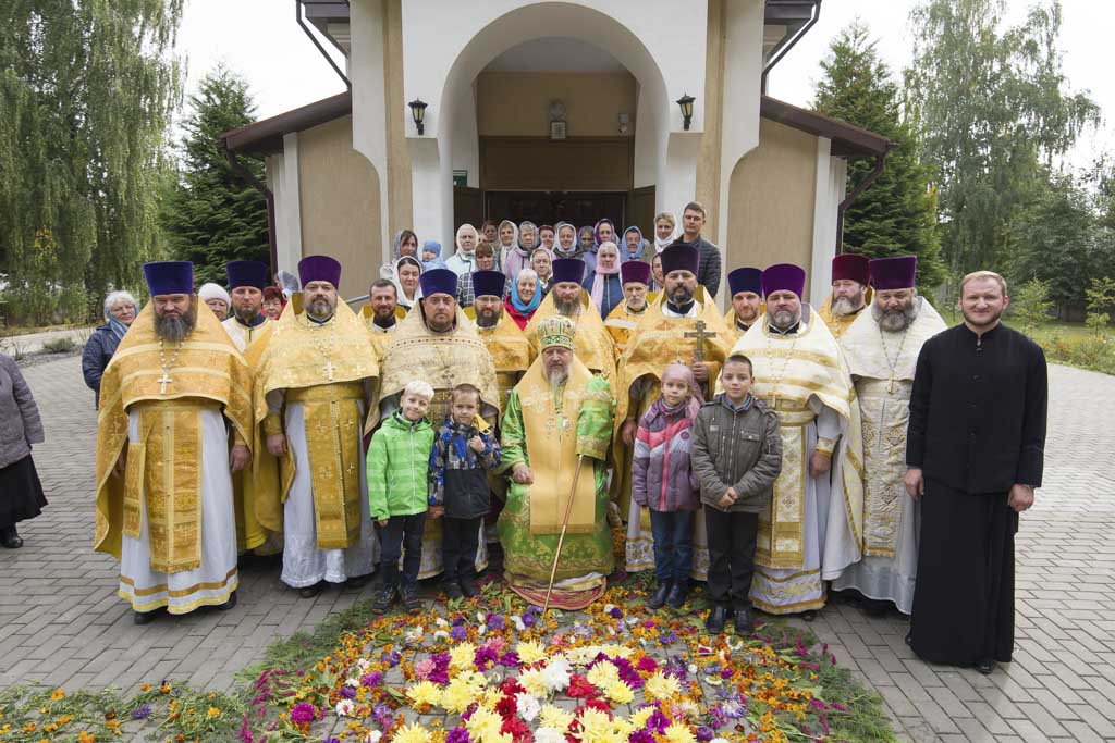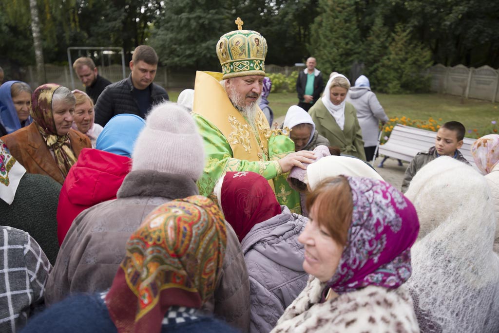 Высокопреосвященнейшему сослужили: благочинный церквей Гомельского района протоиерей Артемий Кривицкий, настоятель прихода иерей Николай Лобжа, духовенство Гомельского районного благочиннического округа и епархии.