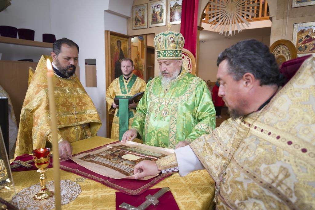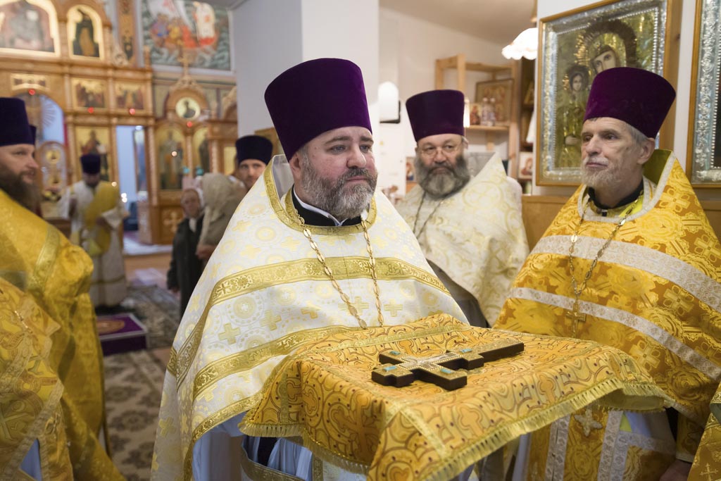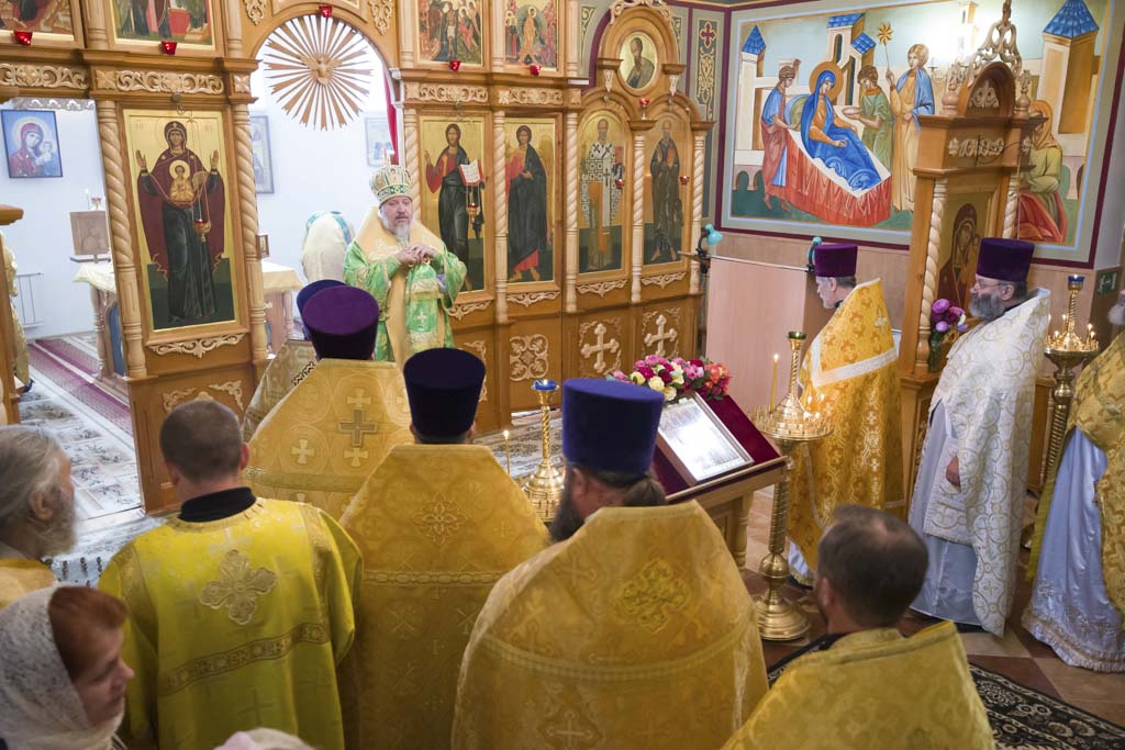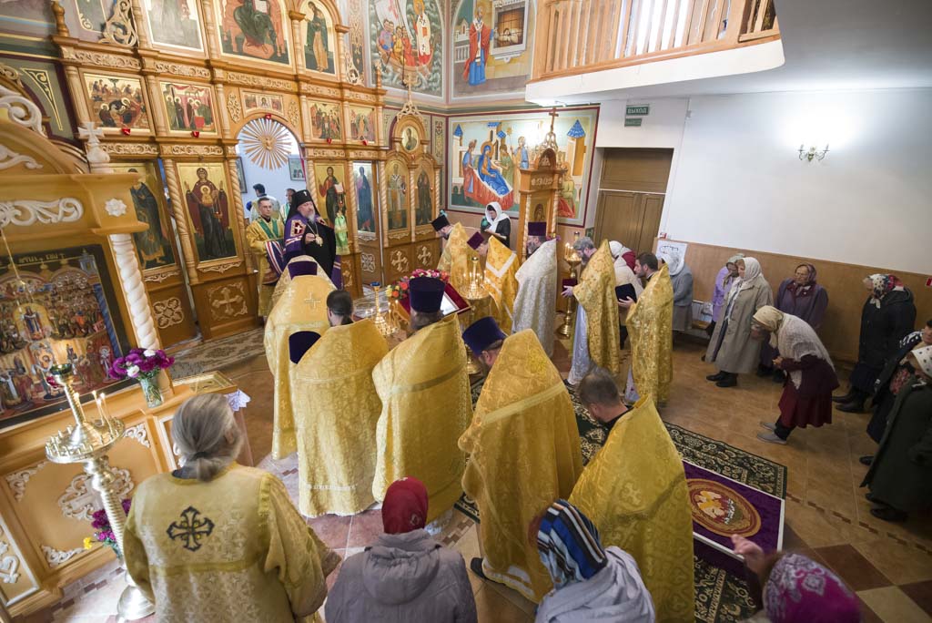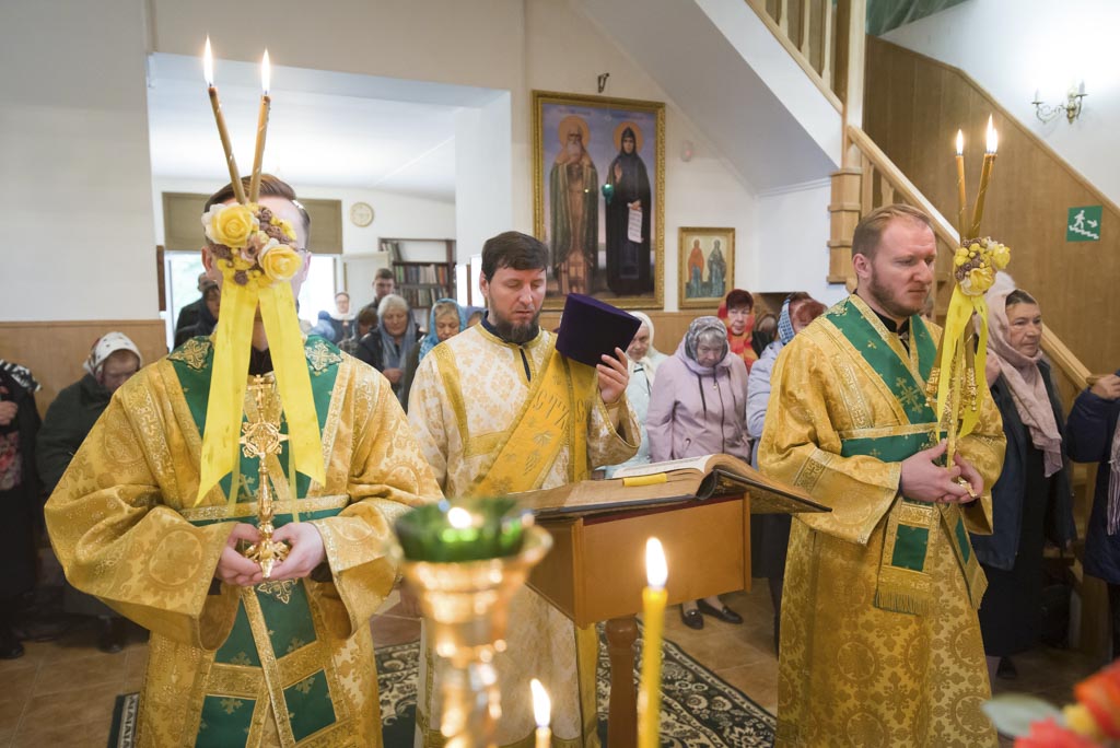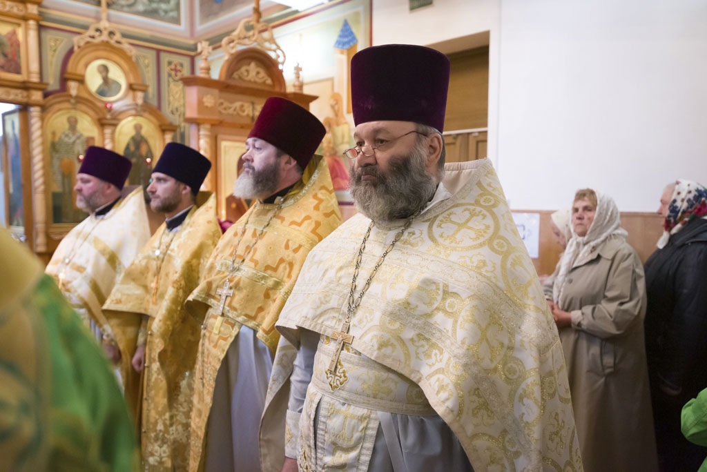 Высокопреосвященнейшему сослужили: благочинный церквей Гомельского района протоиерей Артемий Кривицкий, настоятель прихода иерей Николай Лобжа, духовенство Гомельского районного благочиннического округа и епархии.