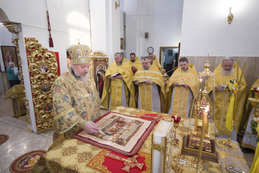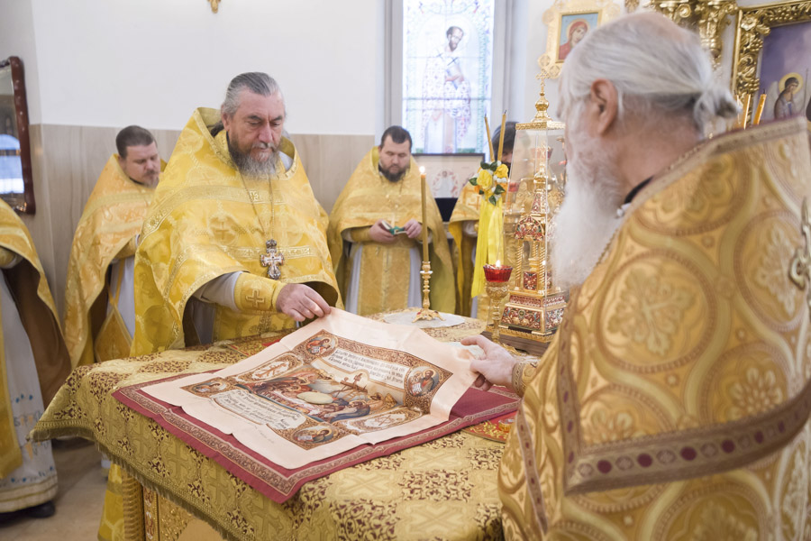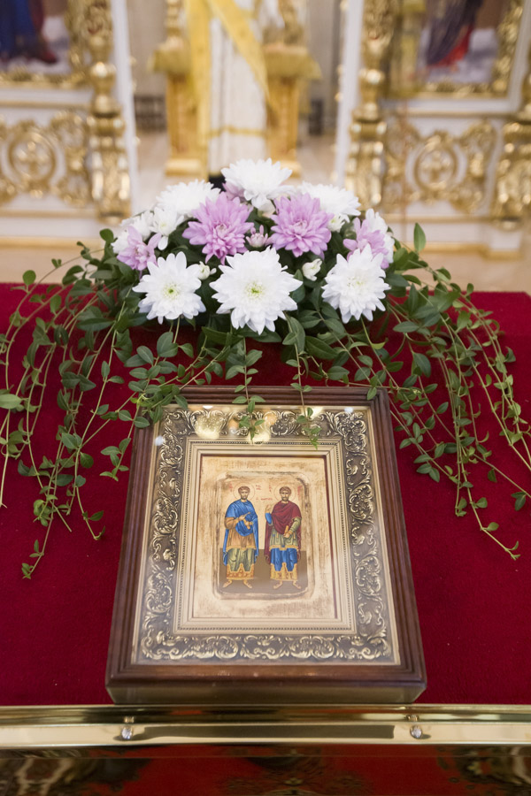 По окончании Литургии архипастырь и сослужащие священнослужители совершили славление святым бессребреникам и Чудотворцам Косьме и Домиану.