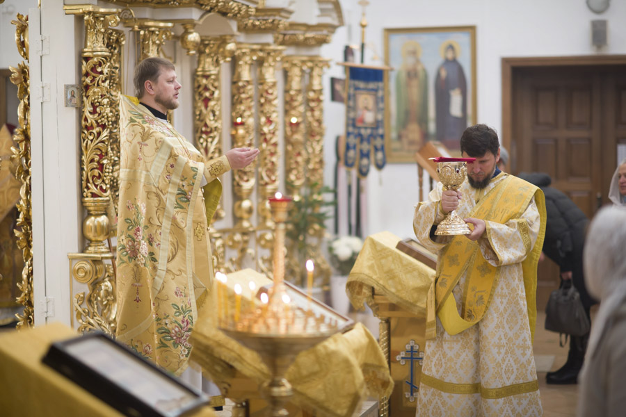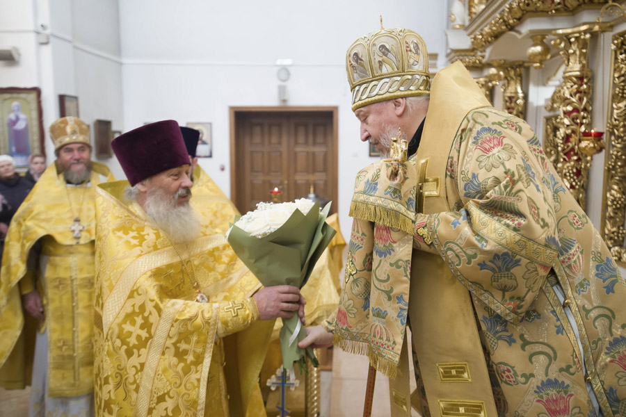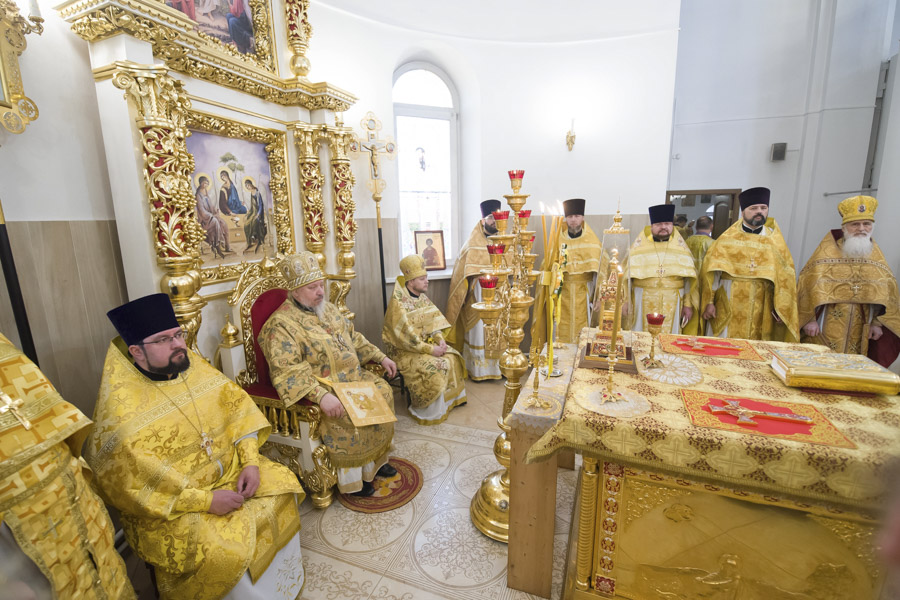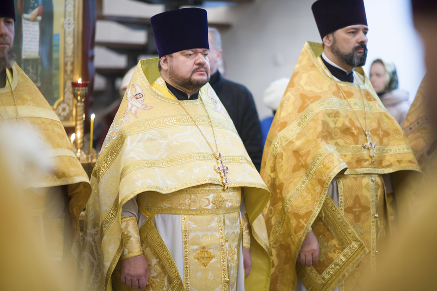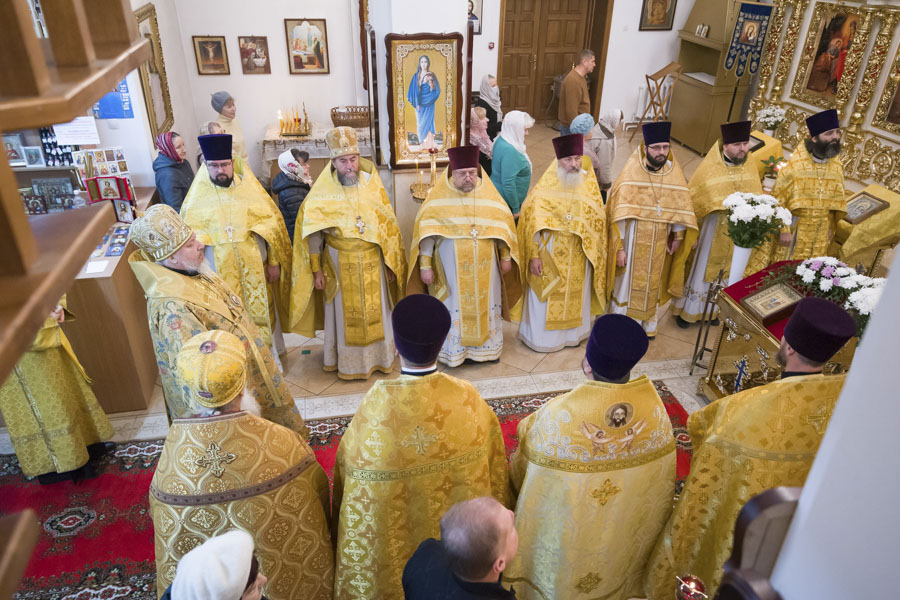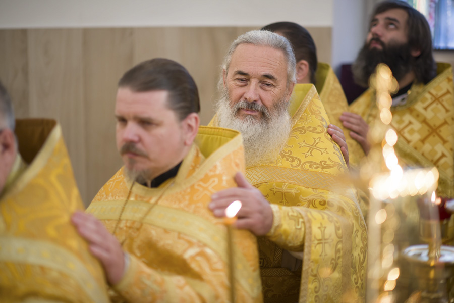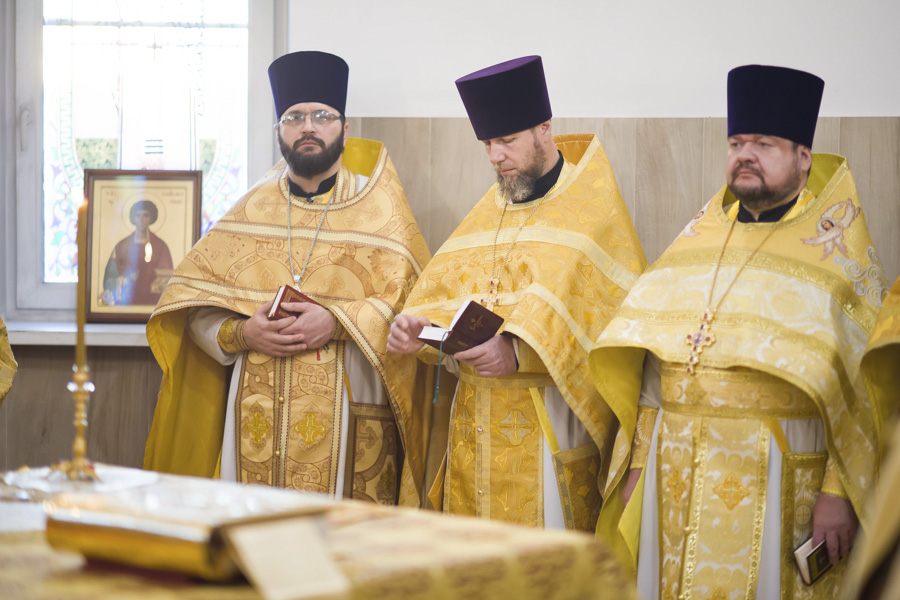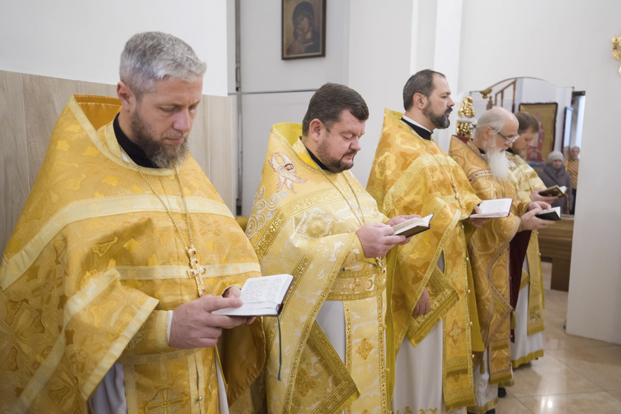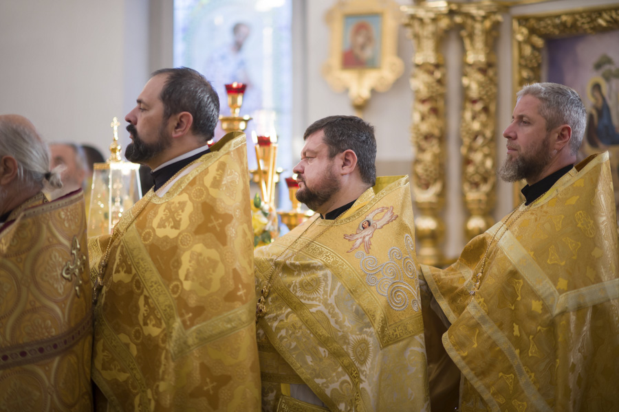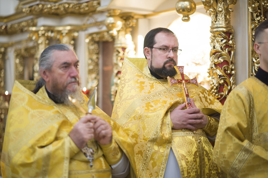 Его Высокопреосвященству сослужили: секретарь Гомельской епархии протоиерей Георгий Алампиев, благочинный Гомельского городского округа протоиерей Игорь Ольшанов, благочинный Гомельского районного округа протоиерей Артемий Кривицкий, председатель отдела по социальному служению и церковной благотворительности протоиерей Владимир Силенко, председатель Информационного отдела протоиерей Олег Кострома, настоятель прихода протоиерей Владимир Сулимов, эконом Гомельской епархии протоиерей Владимир Масалитин, ректор библейско-богословских курсов протоиерей Вадим Качан, председатель комиссии по канонизации святых в Гомельской епархии протоиерей Александр Лопушанский, настоятели приходов города и духовенство епархии.