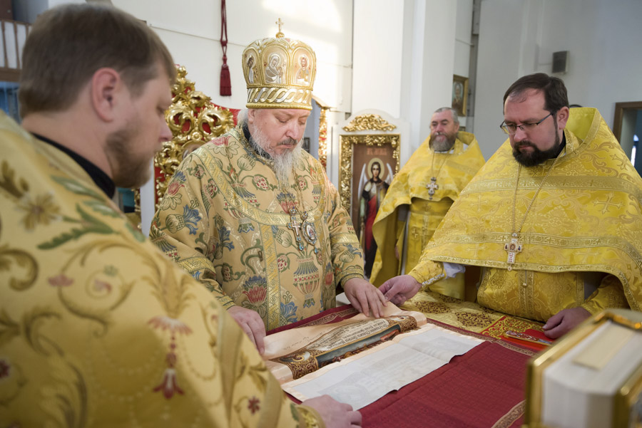 В завершении было вознесено многолетие Предстоятелю Русской Православной Церкви Святейшему Патриарху Кириллу, Высокопреосвященнейшему Вениамину, митрополиту Минскому и Заславскому Патриаршему Экзарху всея Беларуси, Высокопреосвященнейшему Стефану, архиепископу Гомельскому и Жлобинскому, Преовсященнейшему Амвросию, епископу Светлогорскому с их богоспасаемою паствою, сему священному собору, богохранимей стране нашей, властем, народу и воинству ея, граду сему и живущим в нем, настоятелю, братии и прихожанам святаго храма сего, и всем зде предстоящим и молящимся, и сродником их и всем православным христианам.