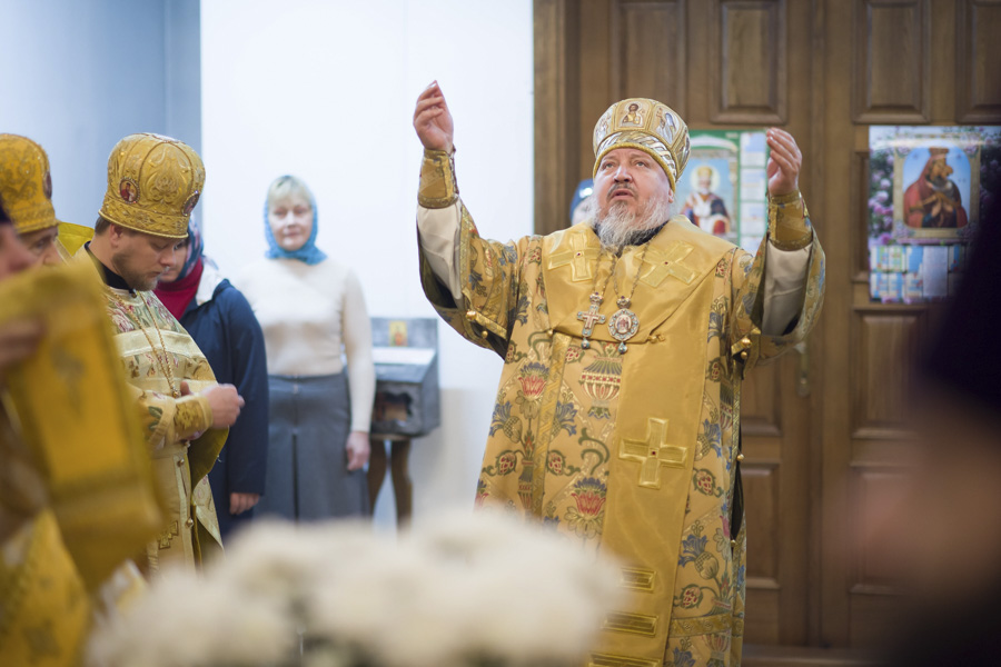 Божественную литургию в день памяти бессребреников и чудотворцев Космы и Дамиана в храме святого великомученика Пантелеимона в г.Гомеле, криптовый храм которого освящен в честь святых бессребреников и чудотворцев Космы и Дамиана Азийских, 14 ноября 2022г. совершил Высокопреосвященнейший Стефан, архиепископ Гомельский и Жлобинский.