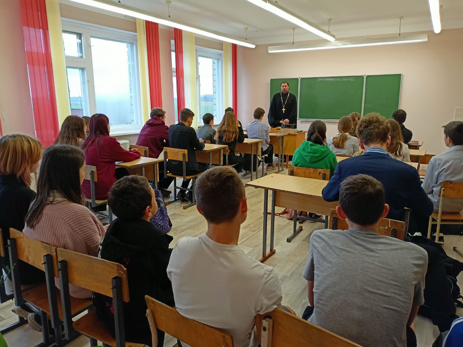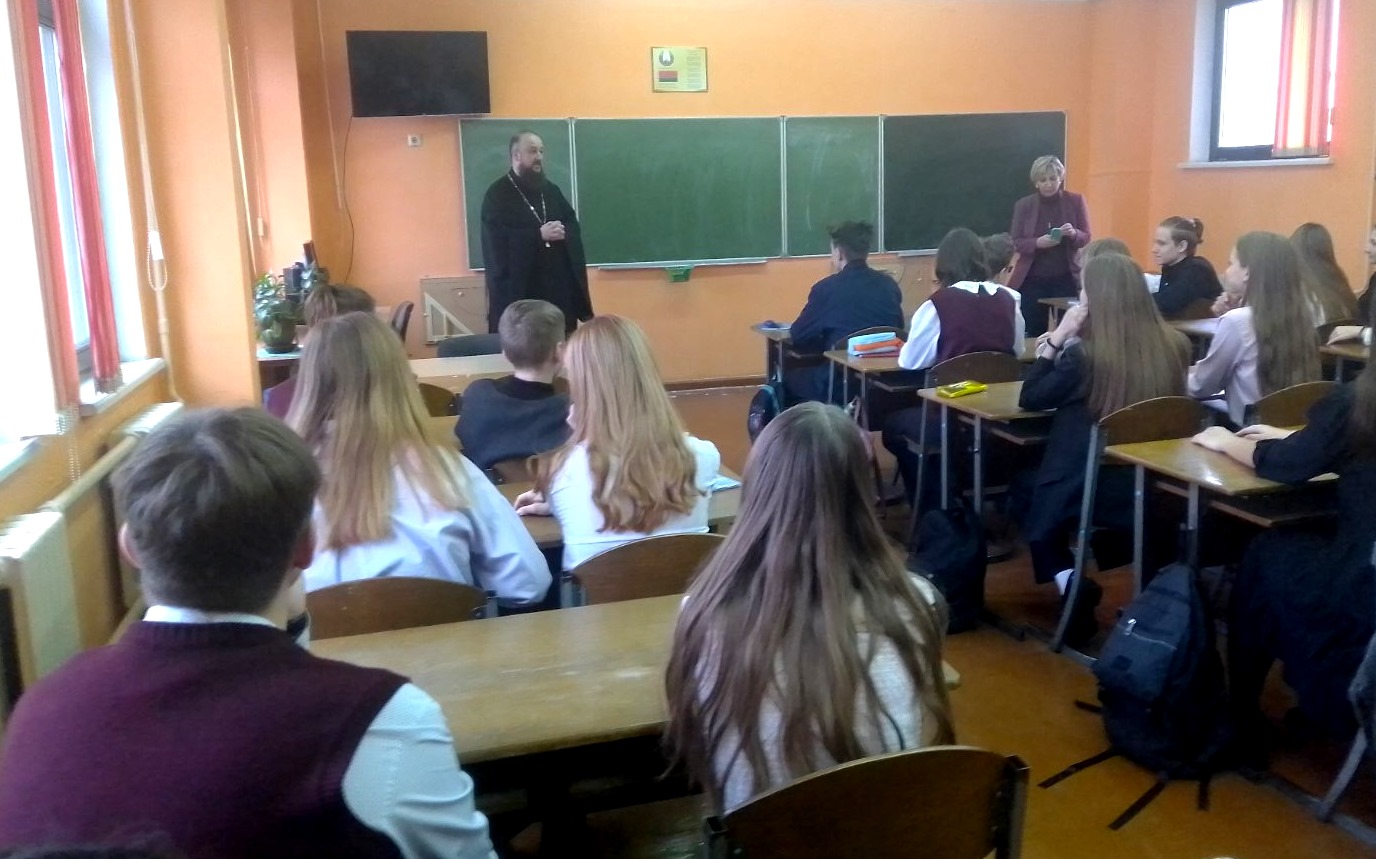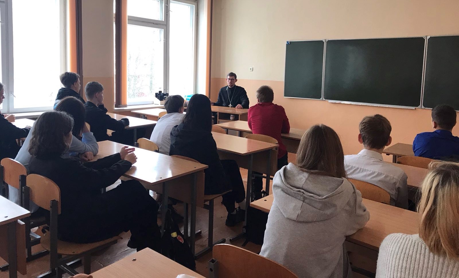 О современных духовных проблемах в нашем мире, о необходимости каждому из нас стараться больше уделять внимание чтению Священного Писания беседовал 18 ноября с учащимися 8 и 9 классов средних школ №9 и №11 г.Жлобина клирик прихода храма святителя Василия Великого иерей Андрей Исаев.
