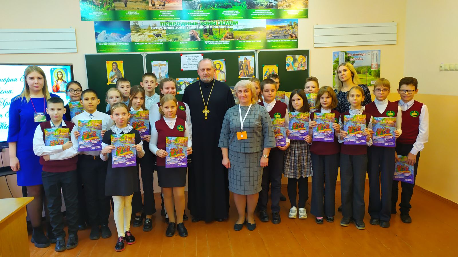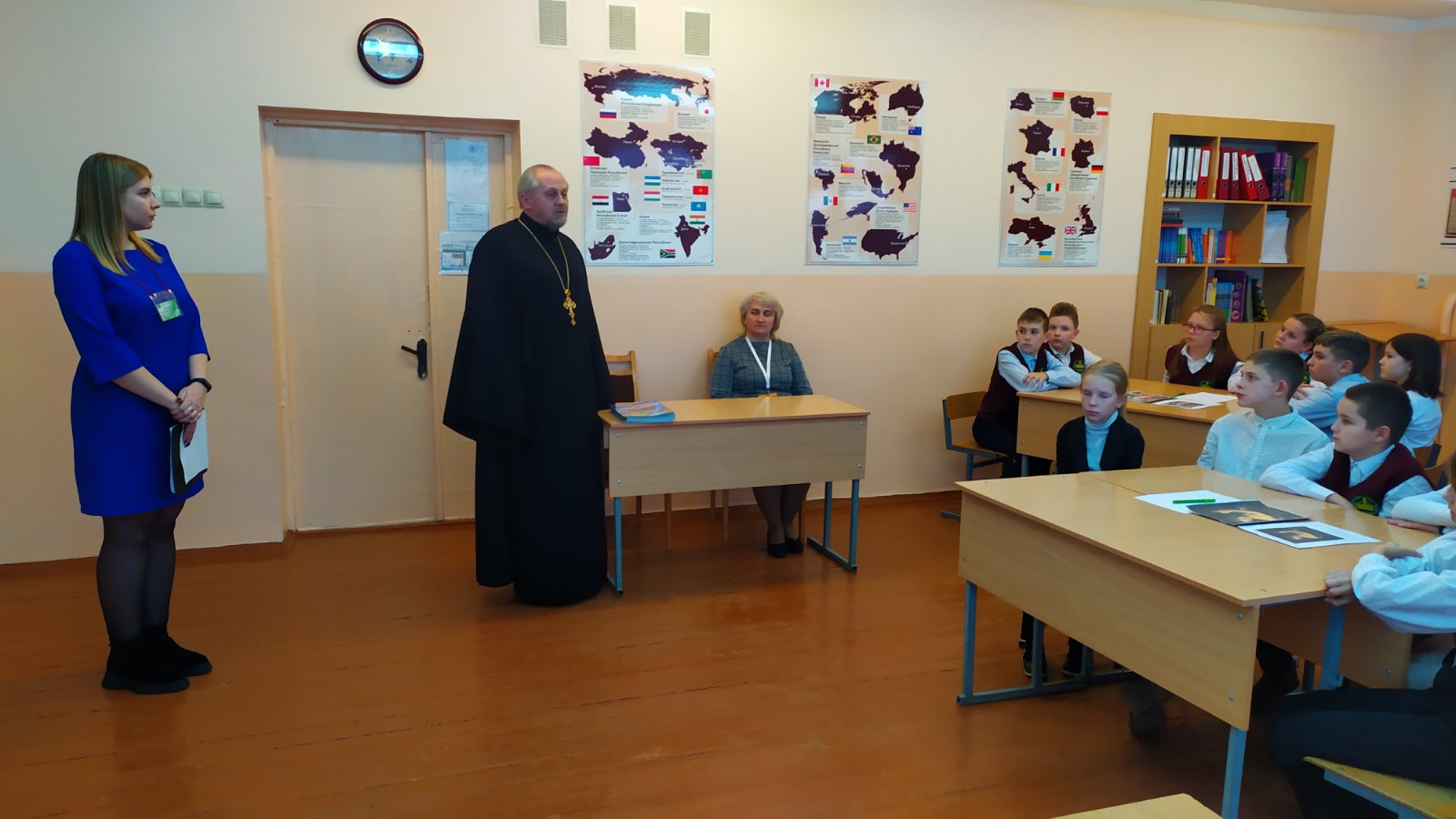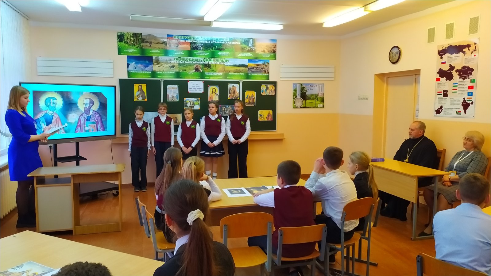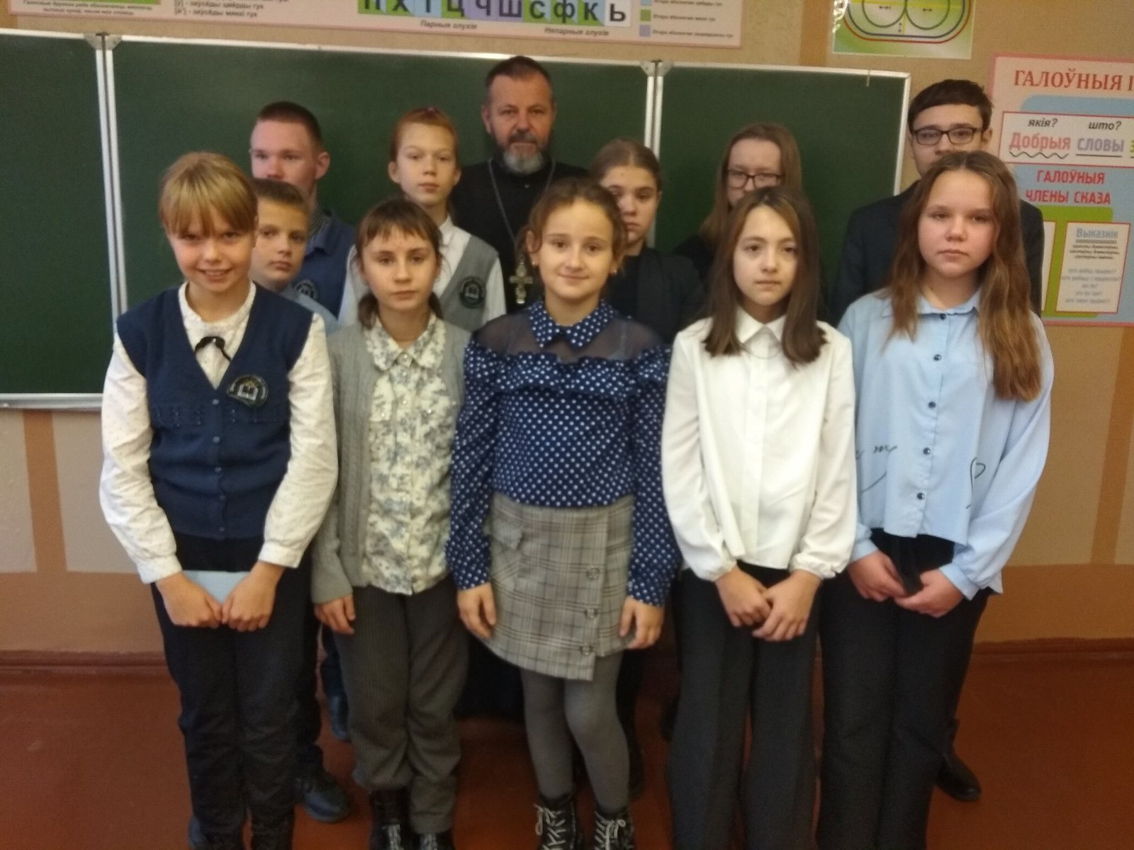 В рамках районных Покровских образовательных чтений 16 ноября в гимназии № 8 имени В.И.Козлова г.Жлобина прошел урок духовности, который провели совместно учитель русского языка и литературы Светлана Олеговна Волкова и протоиерей Леонид Михайловский, настоятель прихода храма преподобного Серафима Саровского в г. Жлобине. Ребята познакомились с историей земной жизни и деяниями Господа нашего Иисуса Христа, пророка Иоанна Крестителя, апостолов Петра и Павла.