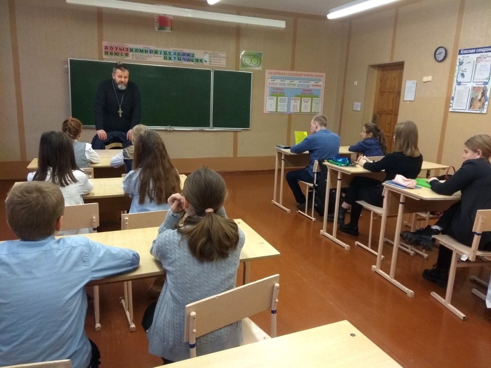 Христианскому пониманию свободы и проблеме духовного выбора человека 16 ноября была посвящена встреча клирика прихода храма Святой Живоначальной Троицы в г.Жлобине иерея Павла Кулиша с учащимися 9-10 классов в гимназии №1 г.Жлобина. Эту же тему обсуждал с учащимися 8-х и 9-х классов Малевичской средней школы клирик прихода храма преподобного Серафима Саровского иерей Михаил Маркосян.