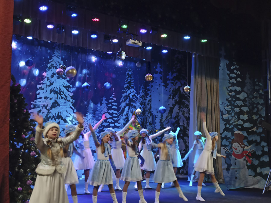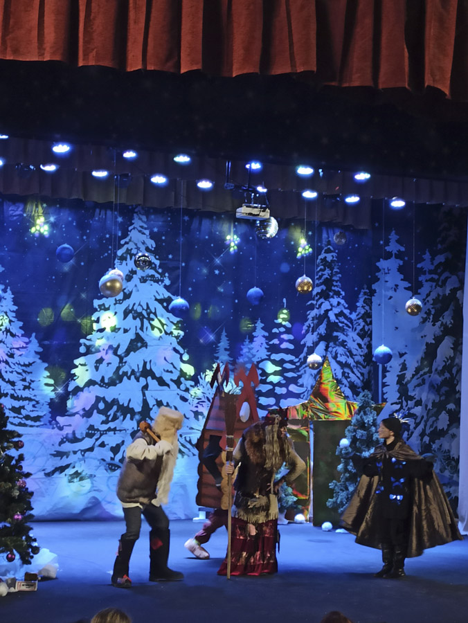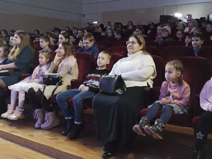 В зале, где проходили новогодние представления, было красиво, уютно и многолюдно. С самого начала спектакля сказочные герои увлекли детей в волшебный мир новогоднего представления.