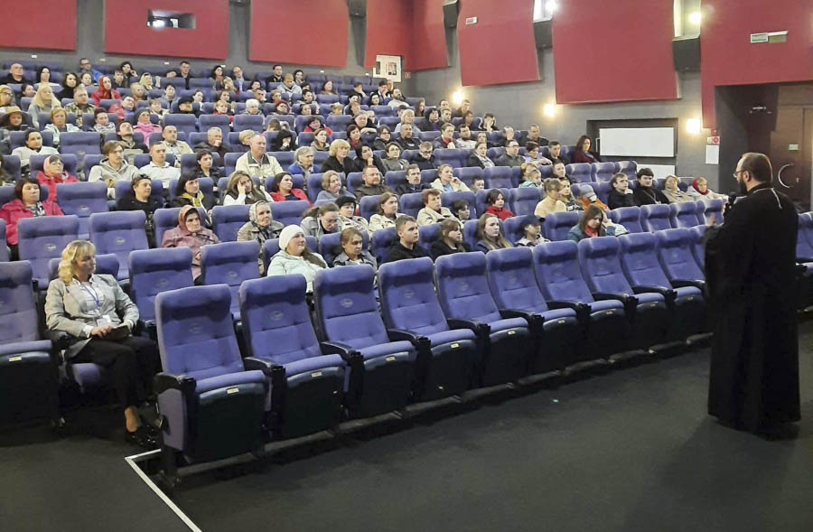 Вечер Православия с участием протоиерея Александра Лопушанского настоятеля прихода храма священномученика Алексия пресвитера Лельчицкого в г.Гомеле, председателя Комиссии по канонизации святых Гомельской епархии состоялся в кинотеатре «Мир» 21 апреля 2023г.