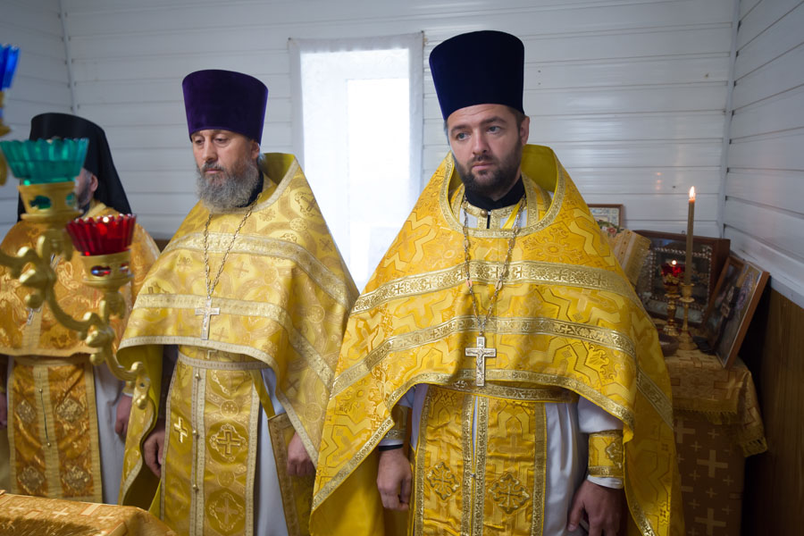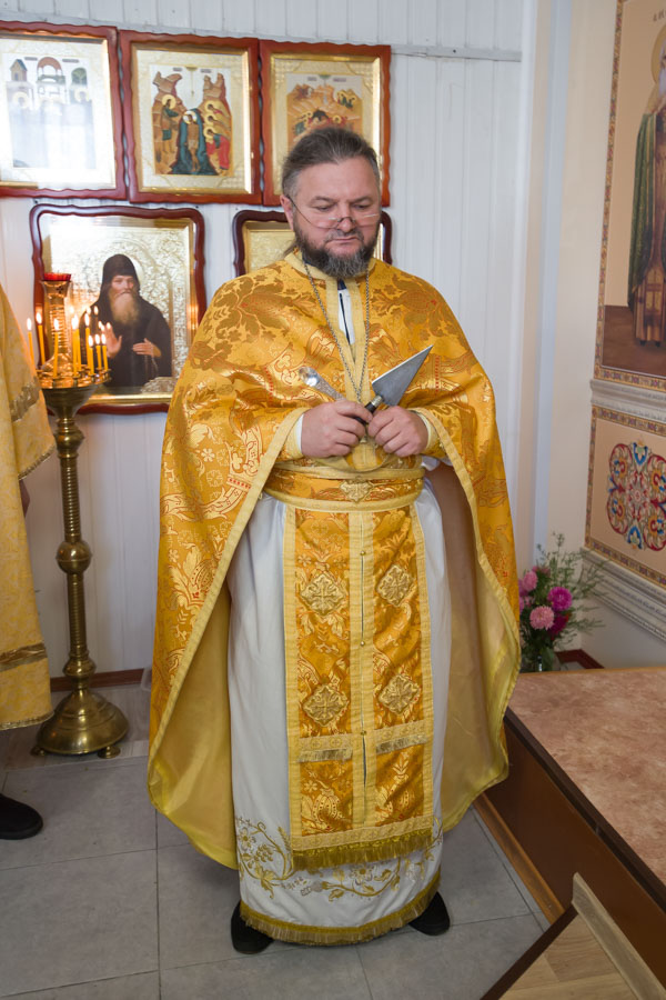 Его Высокопреосвященству сослужили: секретарь Гомельской епархии протоиерей Георгий Алампиев, настоятель прихода иеромонах Венедикт Мажуко, духовенство округа и епархии.