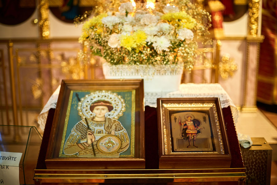 По окончании Литургии был отслужен молебен великомученику Димитрию Солунскому, после чего епископ Амвросий поздравил отца Димитрия Гончарова, отца Димитрия Стрингеля и отца Дмитрия Загоруева с днем ангела и вручил им памятные подарки.