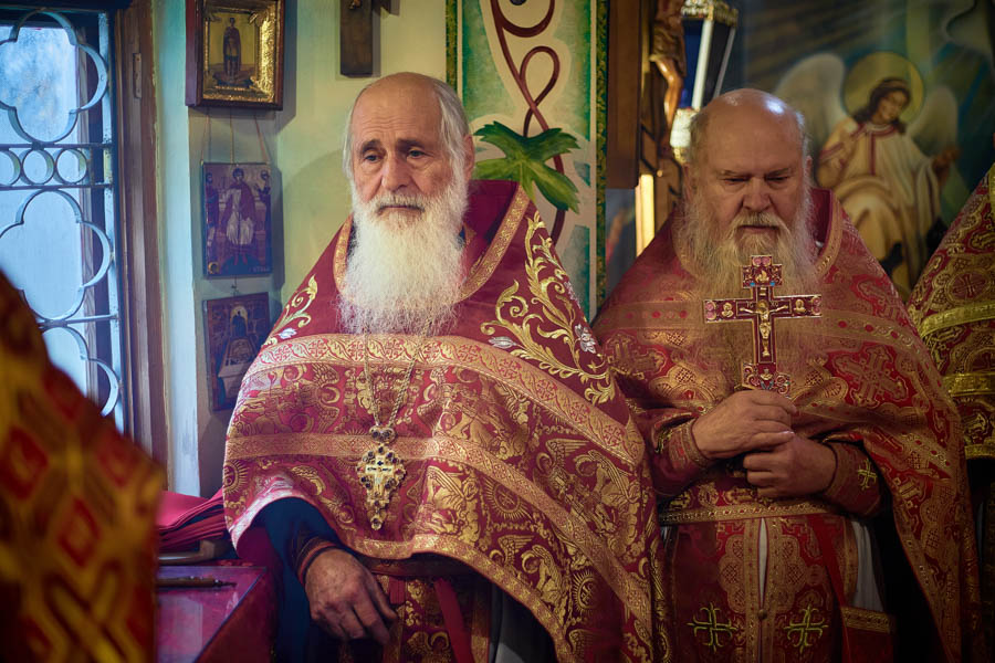 Его Преосвященству сослужили: протоиерей Димитрий Гончаров настоятель прихода храма вмч. Георгия Победоносца; иерей Димитрий Стрингель клирик храма вмч. Георгия Победоносца, иерей Дмитрий Загоруев клирик храма вмч. Георгия Победоносца, протоиерей Виктор Ганачков настоятель прихода храма Ксении Петербуржской в рабочем поселке Большевик Гомельского района, протоиерей Владимир Сулимов настоятель прихода храма великомученика и целителя Пантелиимона г. Гомеля, иерей Александр Пуков клирик храма вмч. Георгия Победоносца и духовенство прихода и Гомельской епархии.