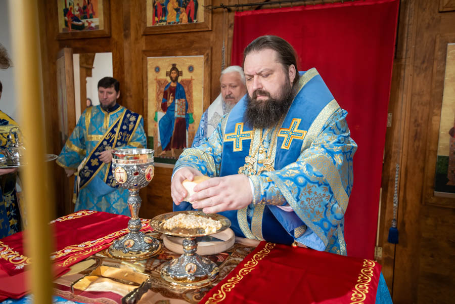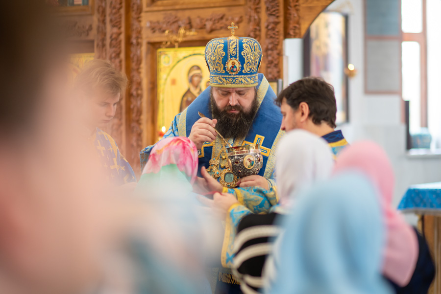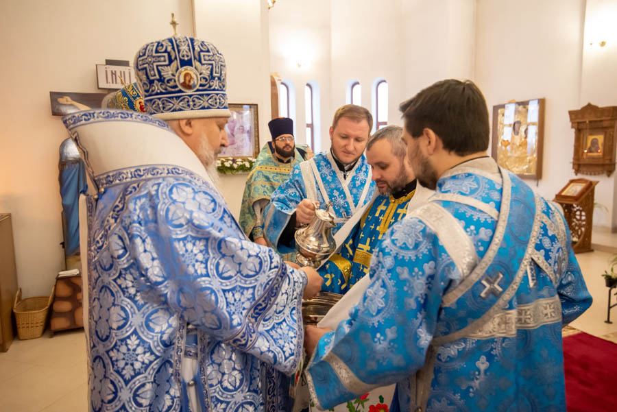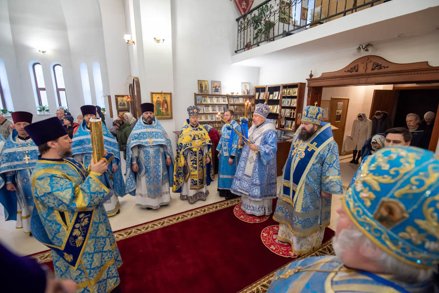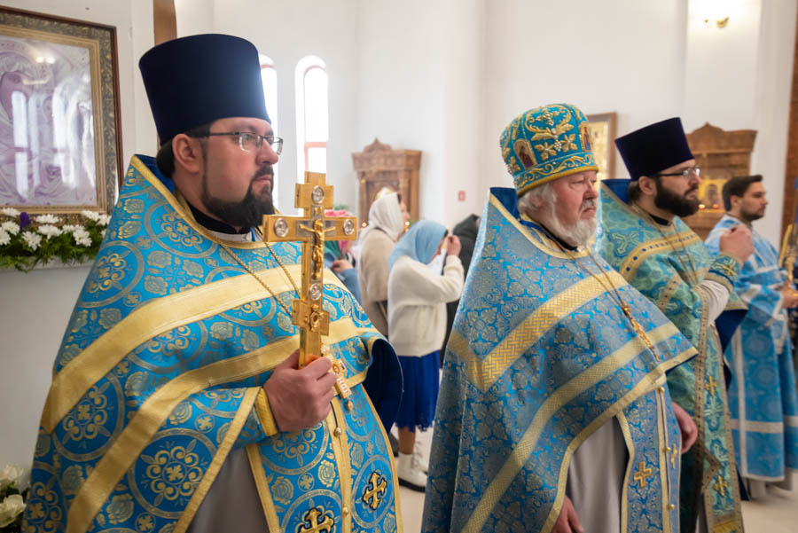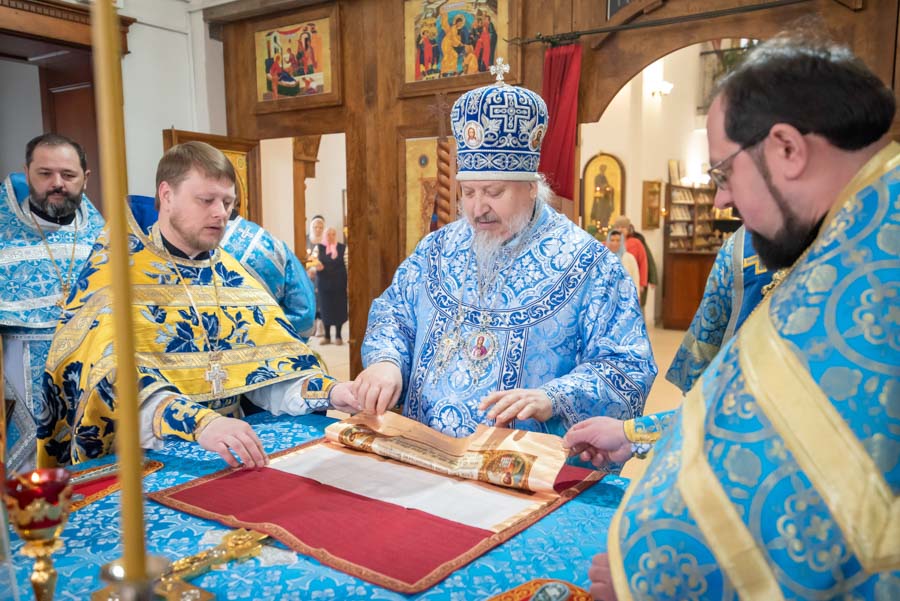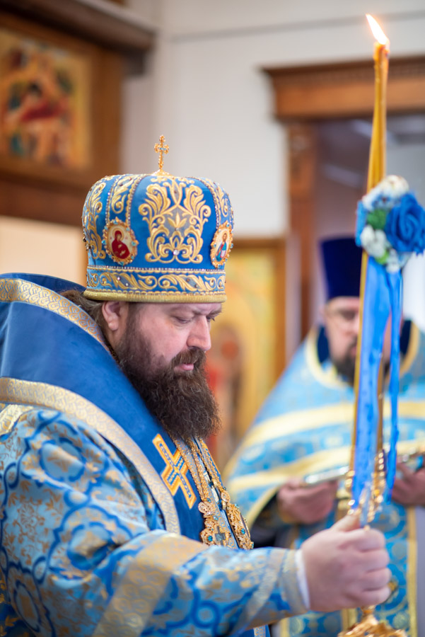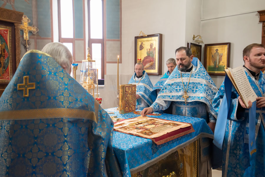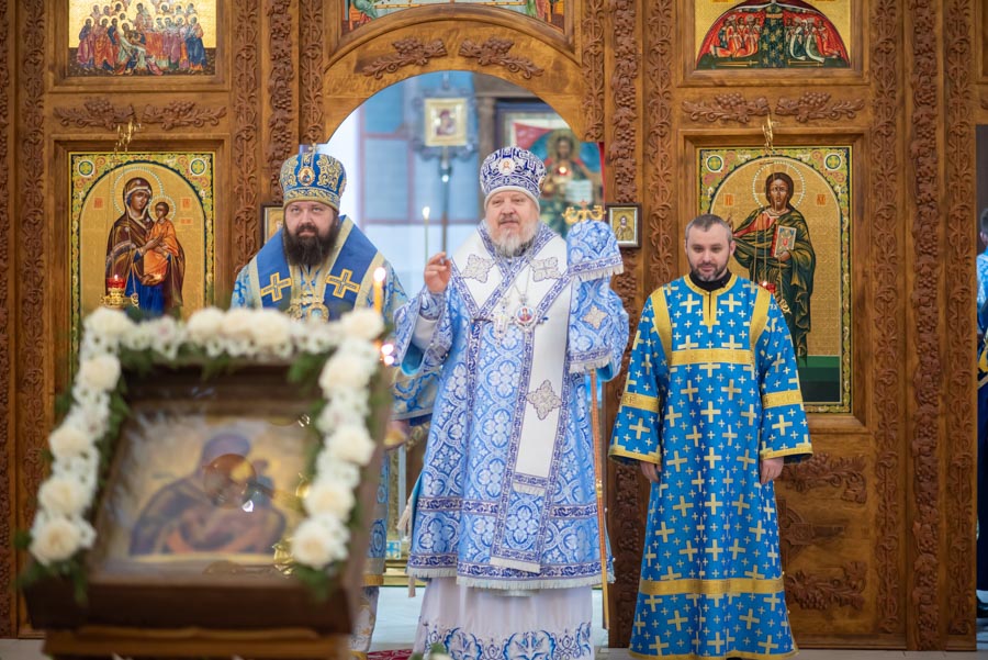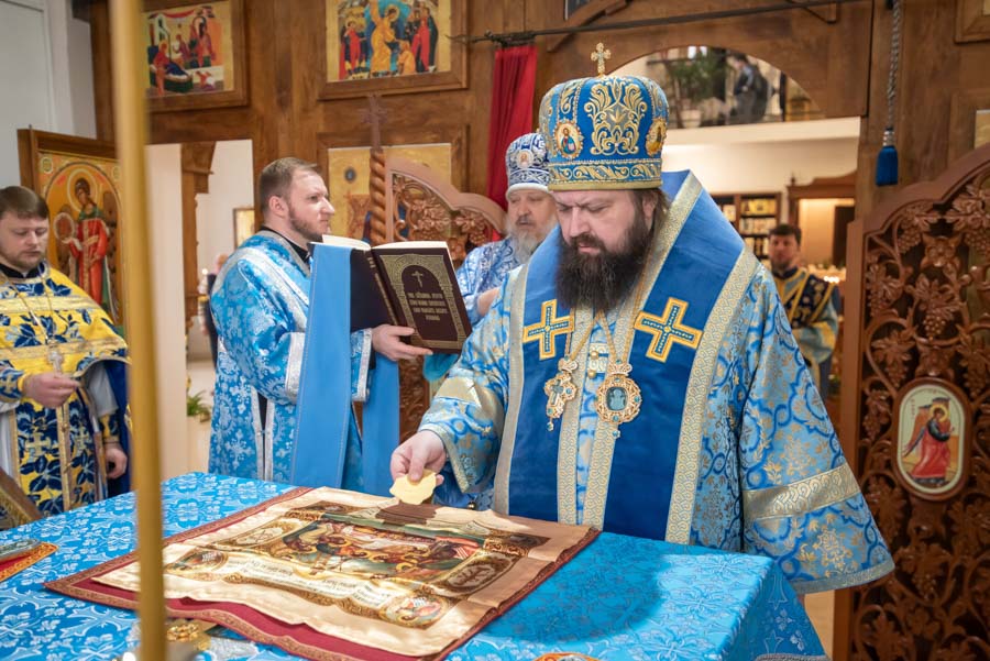 По окончании литургии Владыка обратился к молящимся с архипастырским словом и поблагодарил настоятеля, что его заботами 5 лет назад в храм была доставлена старинная икона Божией Матери «Грузинская».