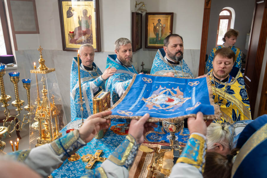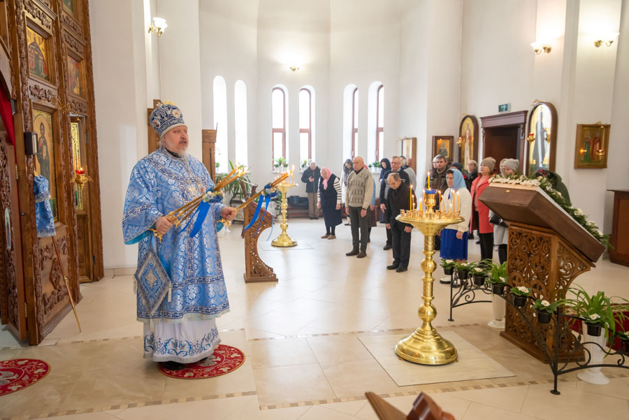 Божественную литургию 4 марта 2024г., в день обретения иконы Божией Матери «Грузинская», в храме Грузинской иконы Божией Матери г.Гомеля, где находится одноименный старинный образ Богородицы, совершили Высокопреосвященнейший Стефан, архиепископ Гомельский и Жлобинский и Преосвященнейший Амвросий, епископ Борисовский и Марьиногорский.
