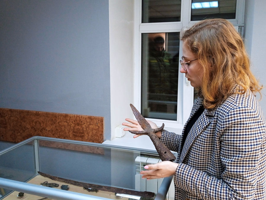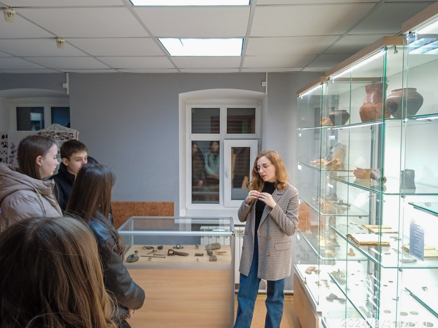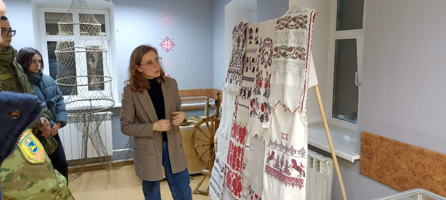 Начался форум со знакомства с православным культурно-историческим наследием Лоевщины. Участники мероприятия посетили музейную краеведческую экспозицию «Каштоўнасці роднага края» ГУК «Музей битвы за Днепр». Директор музея Ященко Виктория Александровна провела обзорную экскурсию по двум выставочным павильонам. В первом выставочном павильоне у молодежи была редкая возможность не только увидеть предметы быта наших предков 19 века, но и прикоснуться к ним: детские ходунки, скрыня, самотканые ковры. Во втором выставочном павильоне участники форума увидели артефакты, найденные при раскопках в г.п.Лоев и д.Мохов Лоевского района: образцы картечи, монеты, женские браслеты, нательные крестики, элементы холодного оружия 17 века. Так же экспонатами этой экспозиции стали иконы, переданные музею жителями г.п.Лоев «Святой вмч. Георгий Победоносец», «Св. мчч. Флор и Лавр».