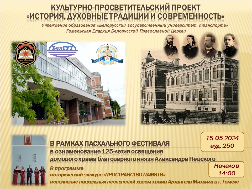 15 мая 2024 г. состоится совместный проект Белорусского государственного университета транспорта и Гомельской епархии Белорусской