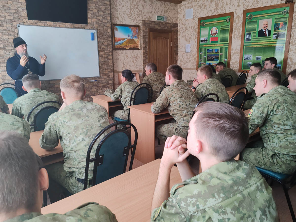 Круговец-Калининскую пограничную заставу в преддверии Дня памяти святых покровителей семьи Петра и Февронии Муромских посетил настоятель храма святителя Николая Чудотворца агрогородка Ленино протоиерей Василий Грек. Состоялась беседа священника с личным составом войсковой части на тему «Любовь в семье».