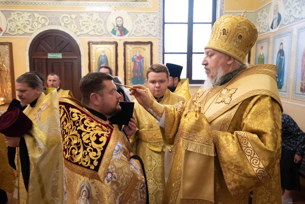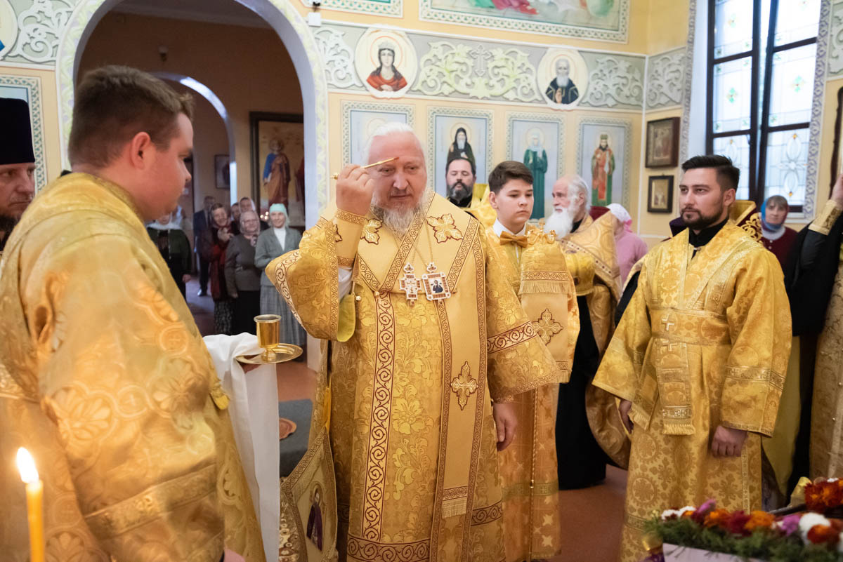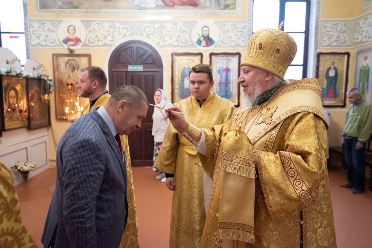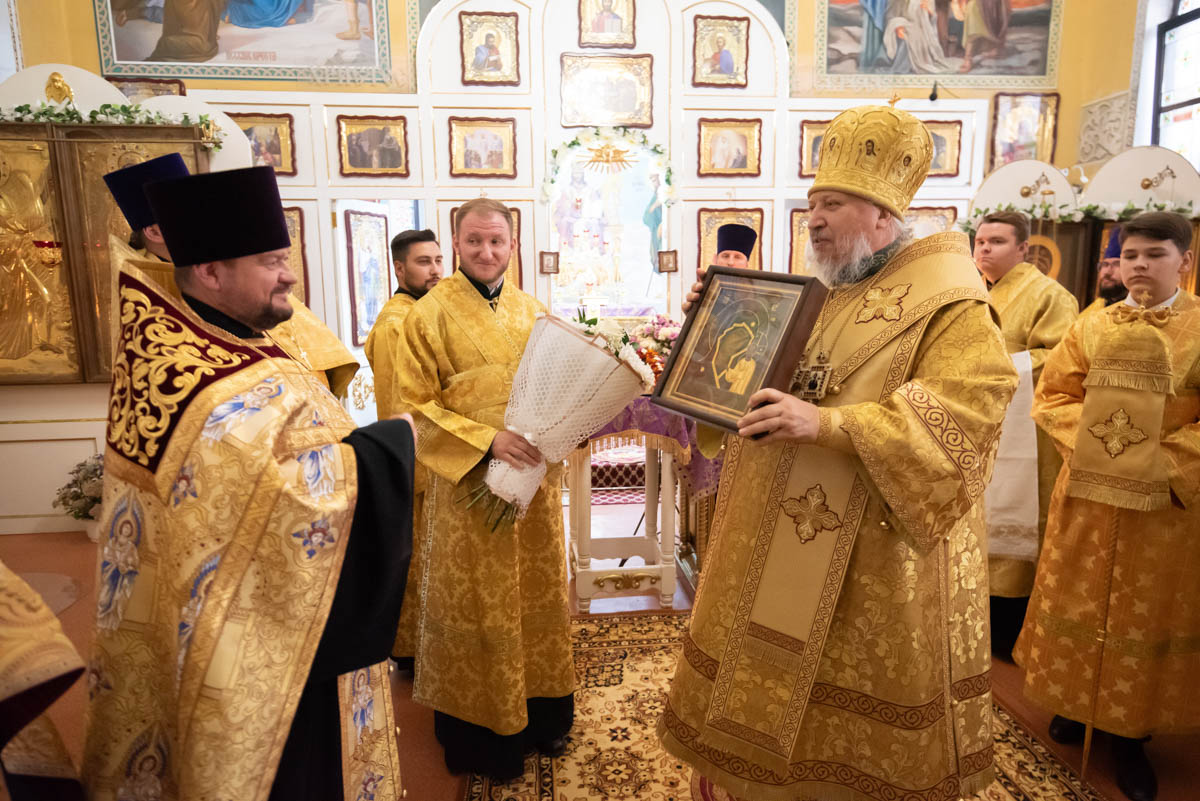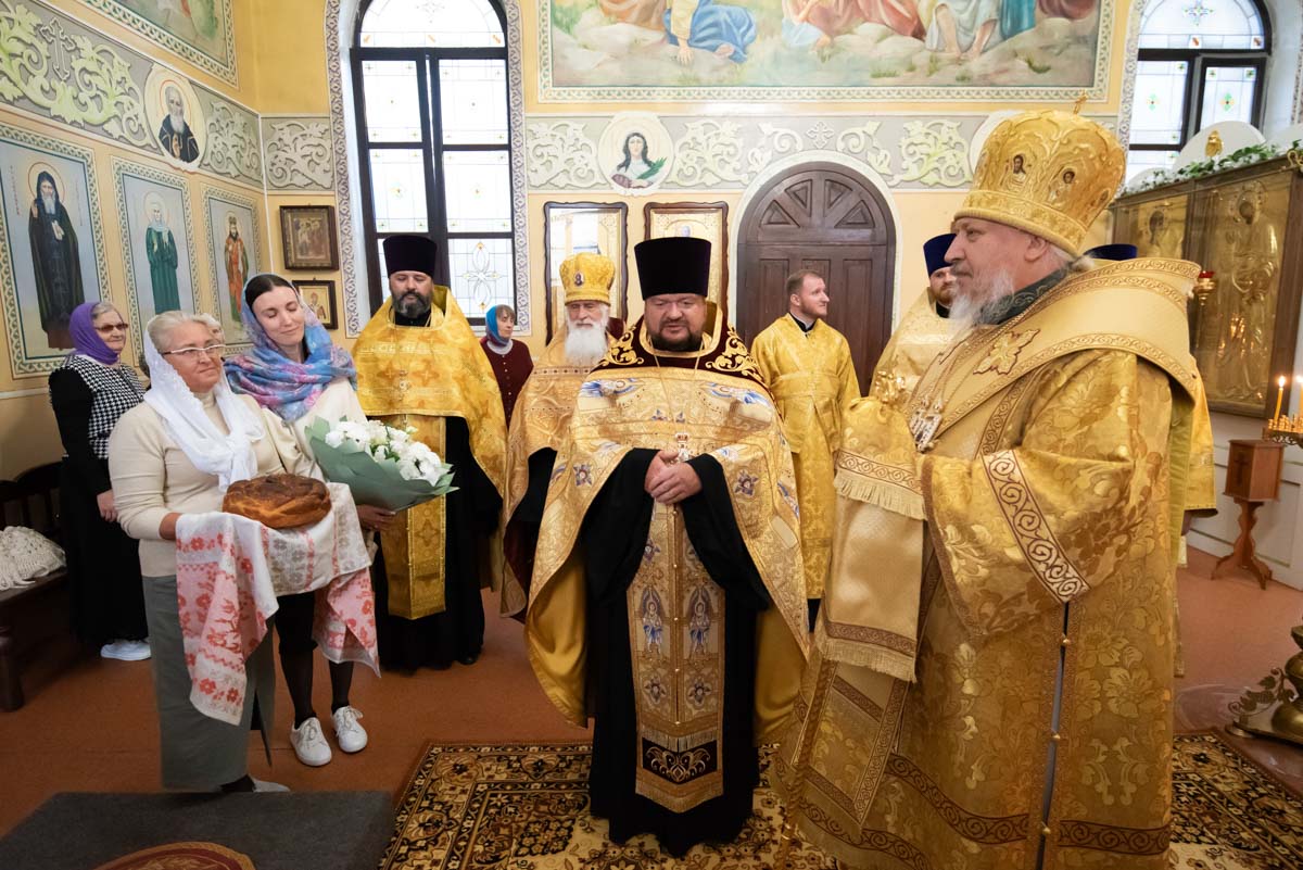 По завершении архипастырь поздравил настоятеля прихода протоиерея Олега Кострому с Днем тезоименитства, пожелав крепости сил, благоденствия и помощи Божией в пастырском служении на благо Матери Церкви.
