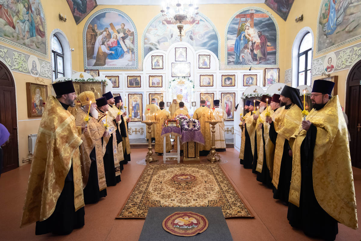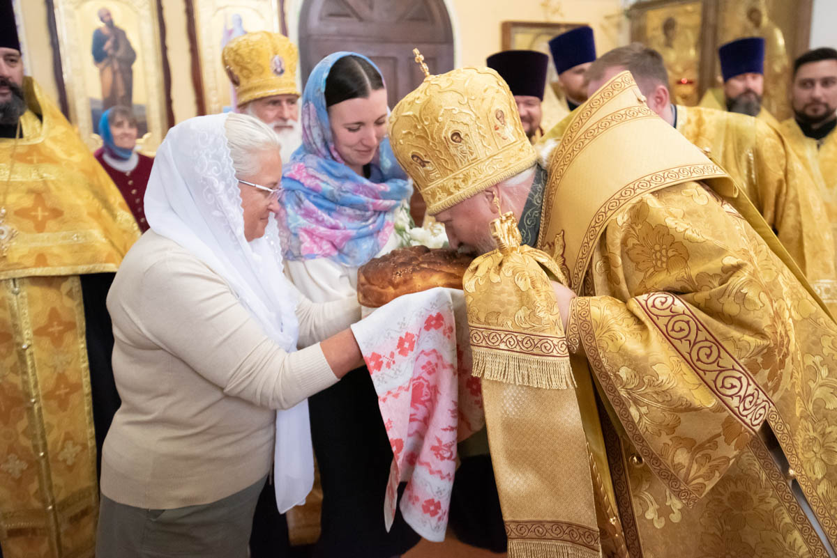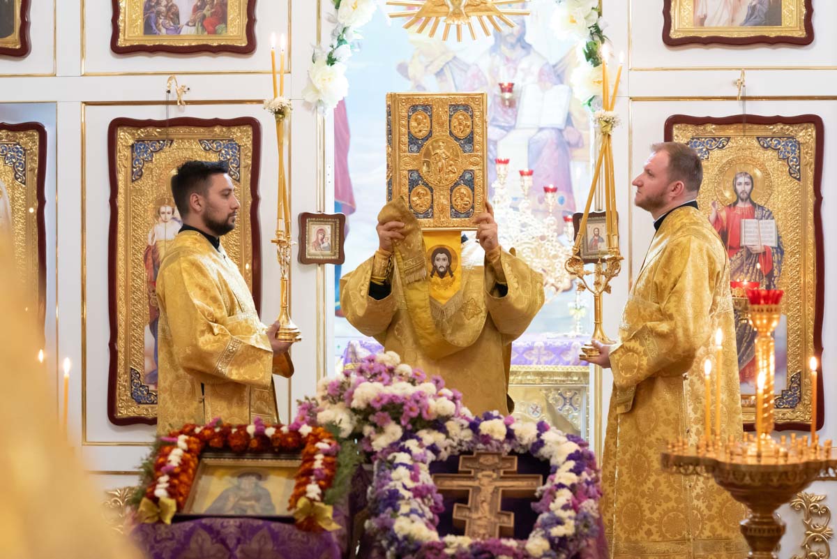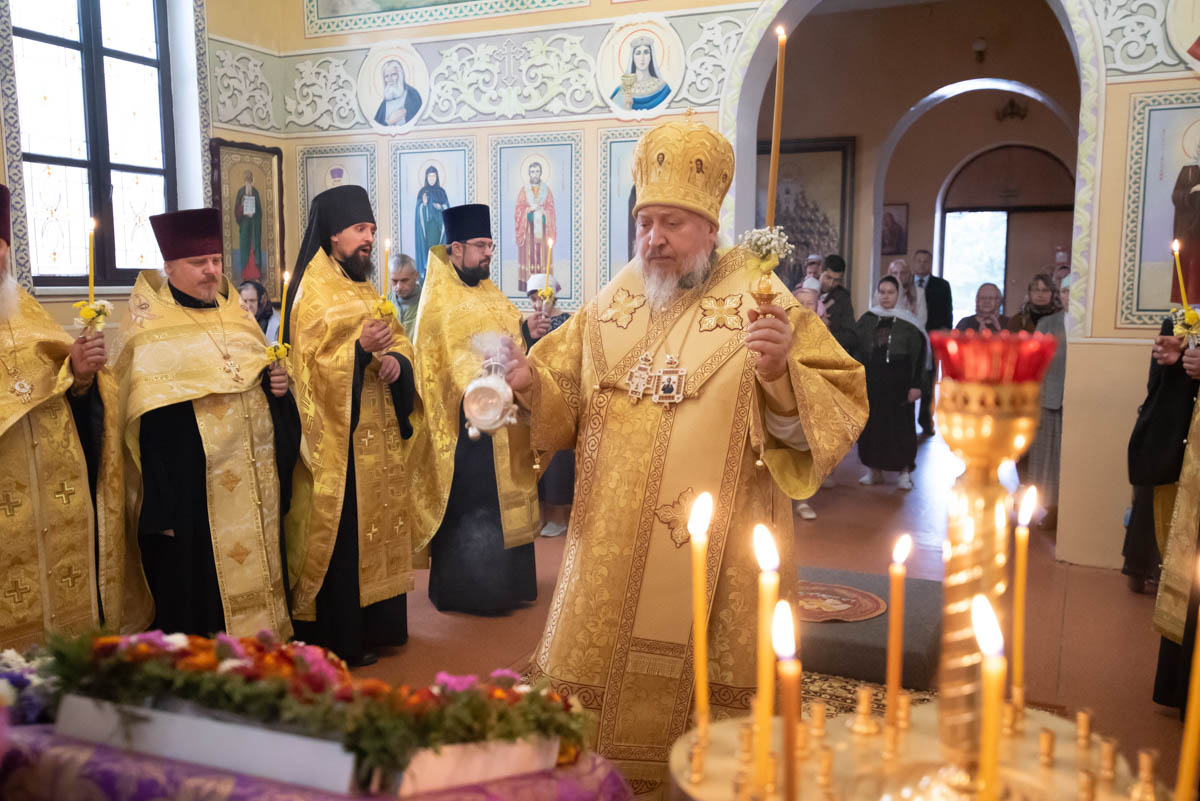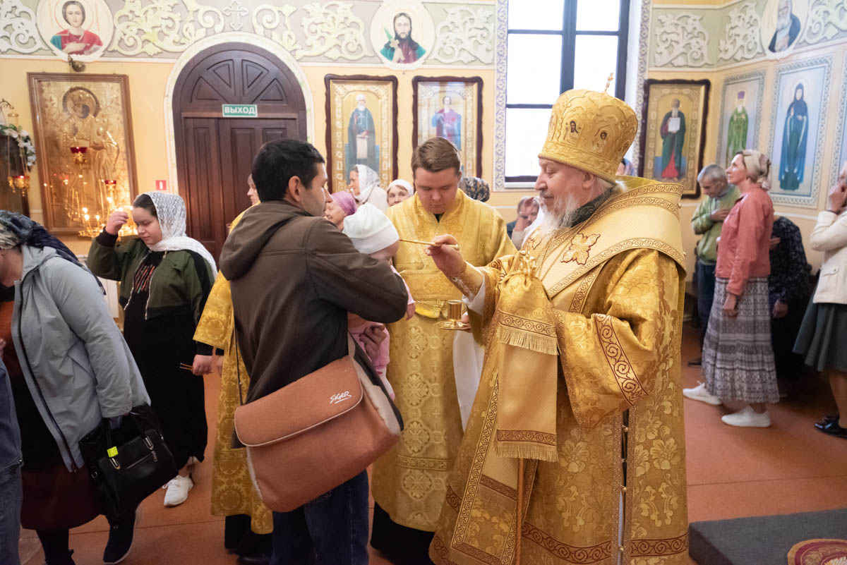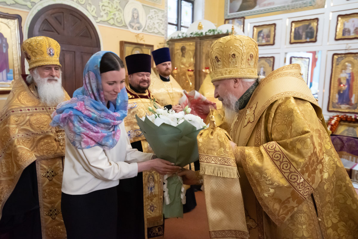 По завершении архипастырь поздравил настоятеля прихода протоиерея Олега Кострому с Днем тезоименитства, пожелав крепости сил, благоденствия и помощи Божией в пастырском служении на благо Матери Церкви.