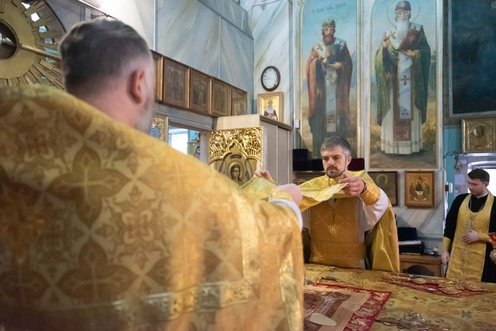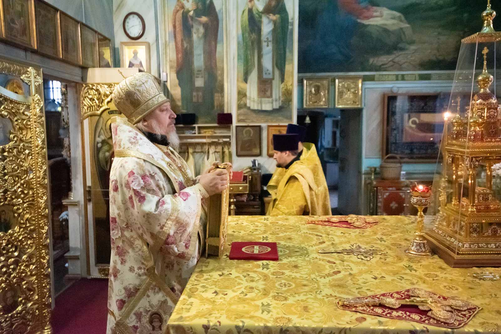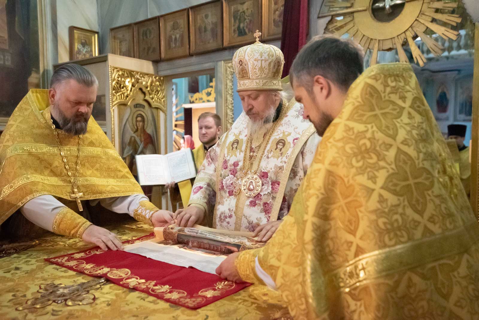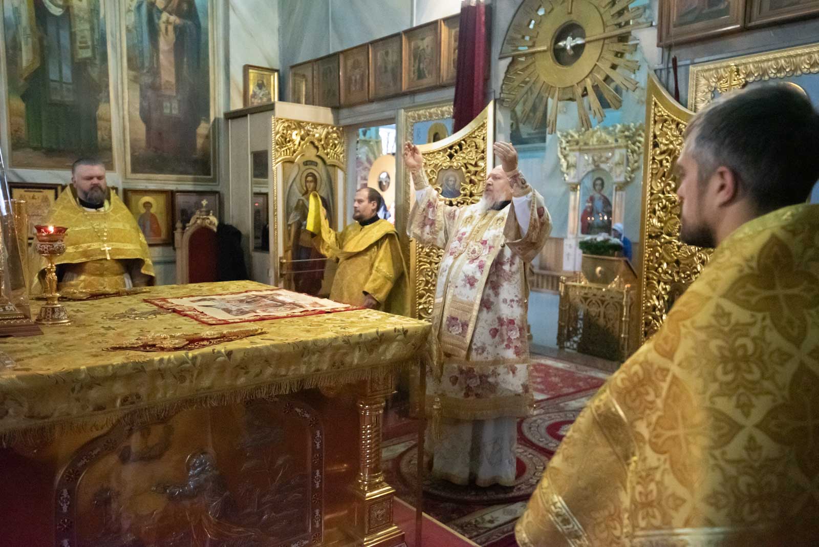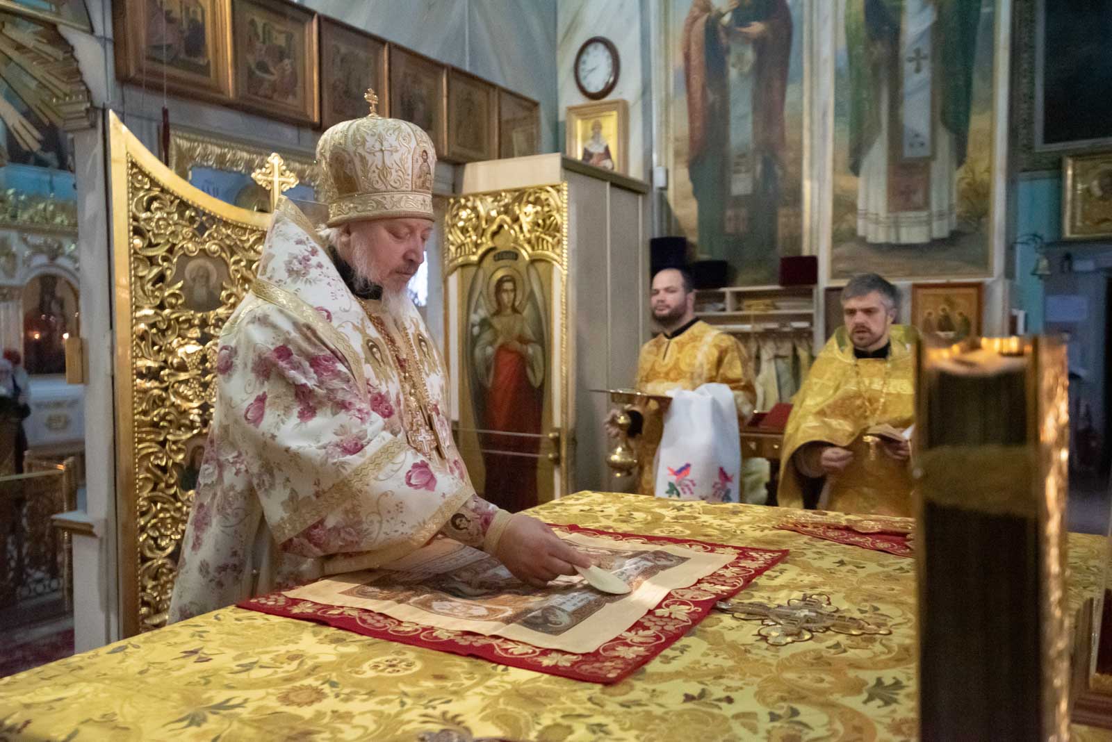 Его Высокопреосвященству сослужили клирики кафедрального собора.
