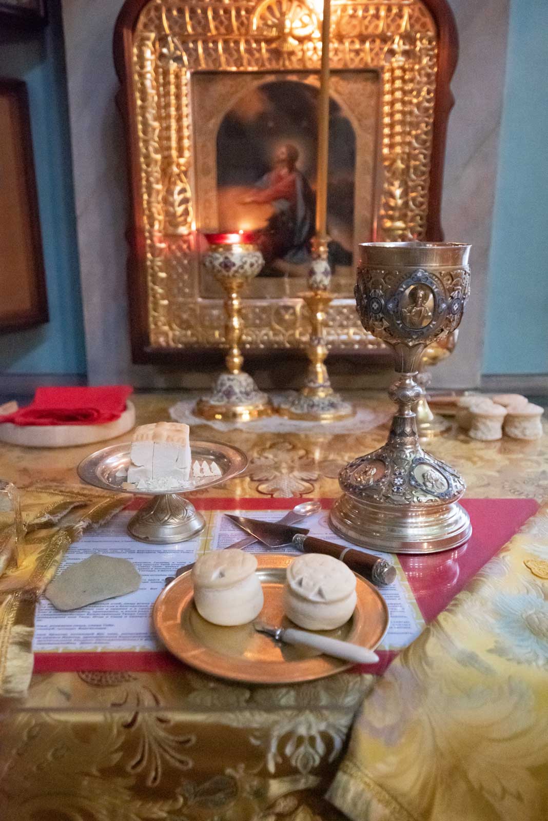За богослужением были вознесены сугубые молитвенные прошения о восстановлении мира.