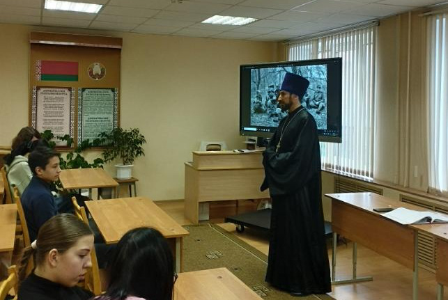 Просветительские беседы с учащимися Жлобинских технологического и металлургического колледжей провёл 11 ноября клирик прихода храма святого мученика Иоанна Воина иерей Сергий Плетежов. Священник акцентировал внимание учащихся на том, что во время Великой Отечественной войны, несмотря на гонения со стороны большевиков, Церковь боролась за Победу. И неустанной молитвой, и помощью красноармейцам и партизанам. Многие священнослужители, отправленные в то нелёгкое время в ссылку, вопреки обстоятельствам несли своё послушание. Они показали для всех пример, что значит быть настоящим христианином. Проявили твёрдость в вере, смирение, терпение, христианскую любовь.