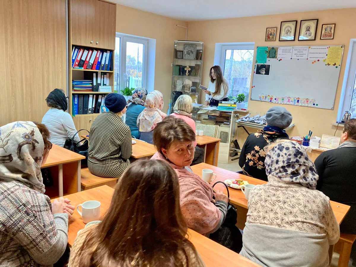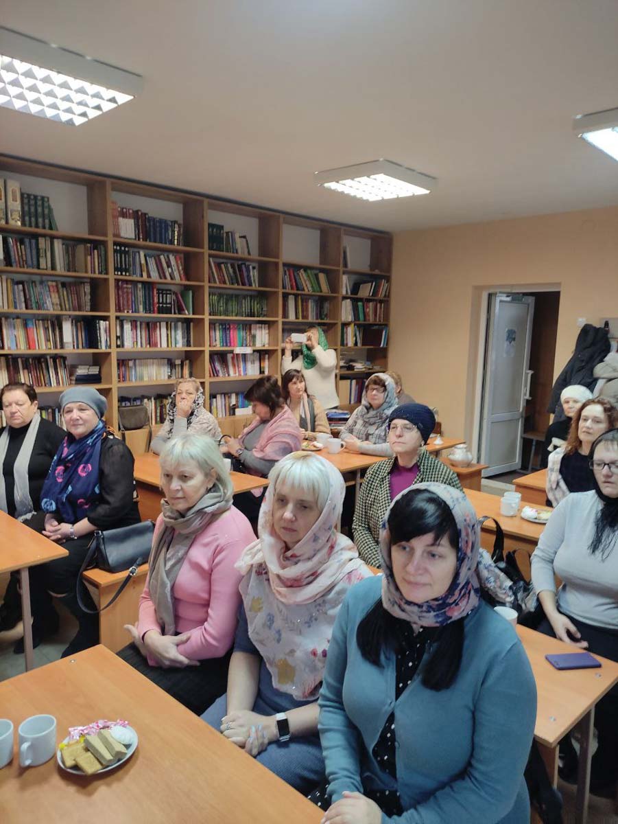 Продолжение встречи прошло за чаепитием в уютной приходской библиотеке. Методист Информационного отдела Гомельской епархии по библиотечной деятельности Кулиткина А.С. провела для гостей небольшую экскурсию по библиотечному фонду, рассказав об уникальных старинных книгах, находящихся в его коллекции. Александра Сергеевна также рассказала о социальной и культурной жизни прихода, подчеркнув важную роль приходской библиотеки в духовном просвещении и сохранении традиционных христианских ценностей.