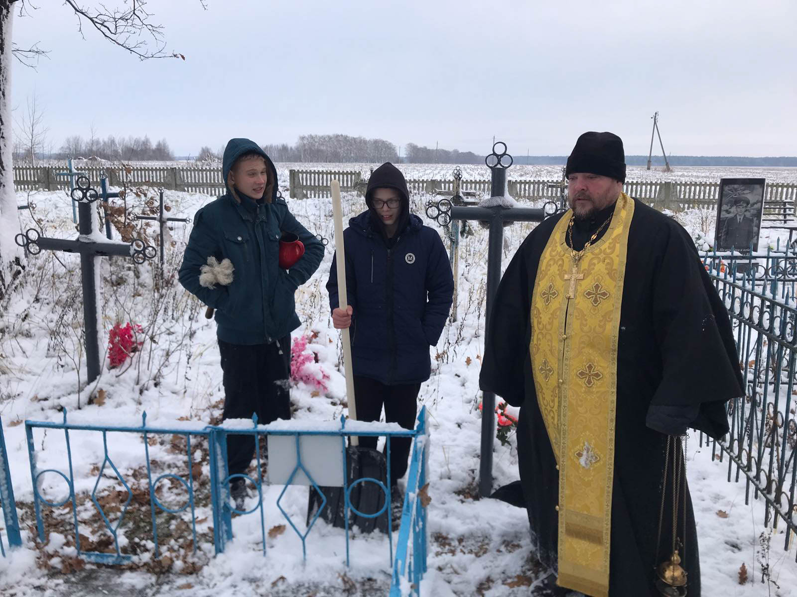 24 ноября настоятель прихода храма святых апостолов Петра и Павла протоиерей Владимир Руденок с учащимися ГУО «Поболовская средняя школа» и педагогом Николаем Шепелевым посетили воинские захоронения в д.Репки и аг.Поболово. Священник совершил литию у могил погибших воинов. Впереди у ребят изучение архивных материалов, знакомство с известными биографическими сведениями солдат, отдавших жизнь за освобождение их малой Родины. А поможет им в этом учитель истории – Шепелев Н.И.