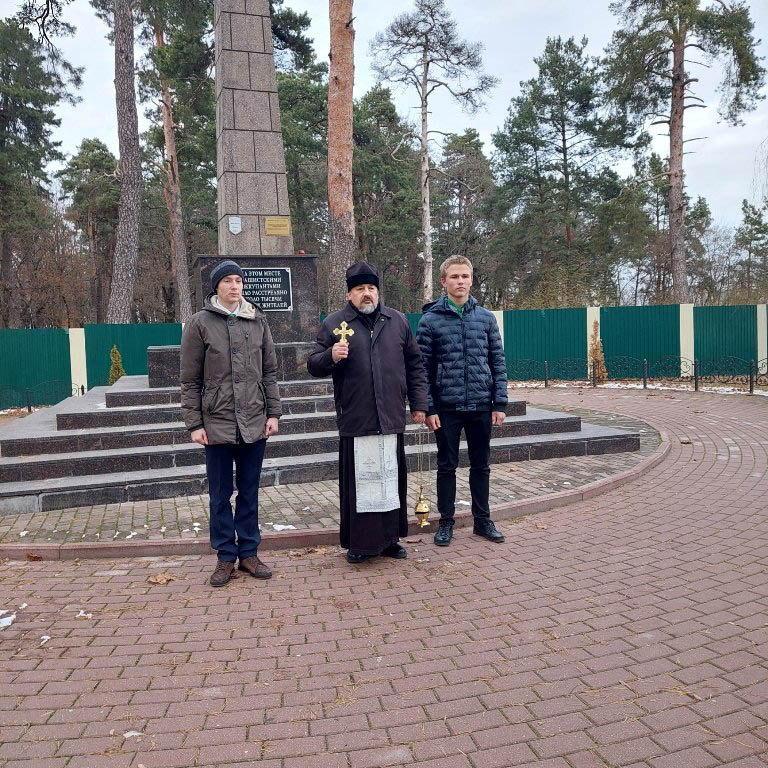 26 ноября настоятель прихода храма Святого Архангела Михаила в аг.Тихиничи протоиерей Николай Степанов совершил литию у памятника мирным жителям, погибшим в годы Великой Отечественной войны. Это место рогачевцы называют Долиной смерти. Здесь в 1942 году немцами было расстреляно около тысячи горожан. В заупокойной литии приняли участие старшеклассники и педагог ГУО “Средняя школа №4 г.Рогачева им.В.С.Величко”. Ребята и учитель истории Можейко Яна Васильевна – участники областного духовно-патриотического проекта “Мы живы, пока нас помнят”.