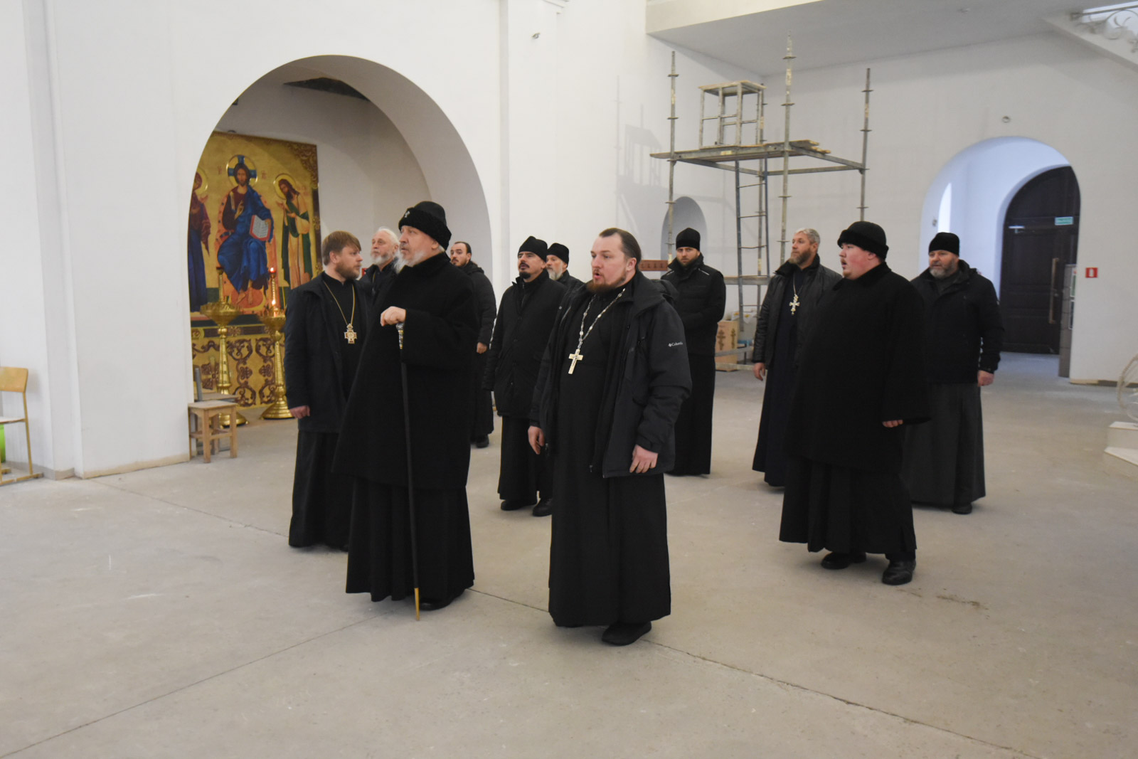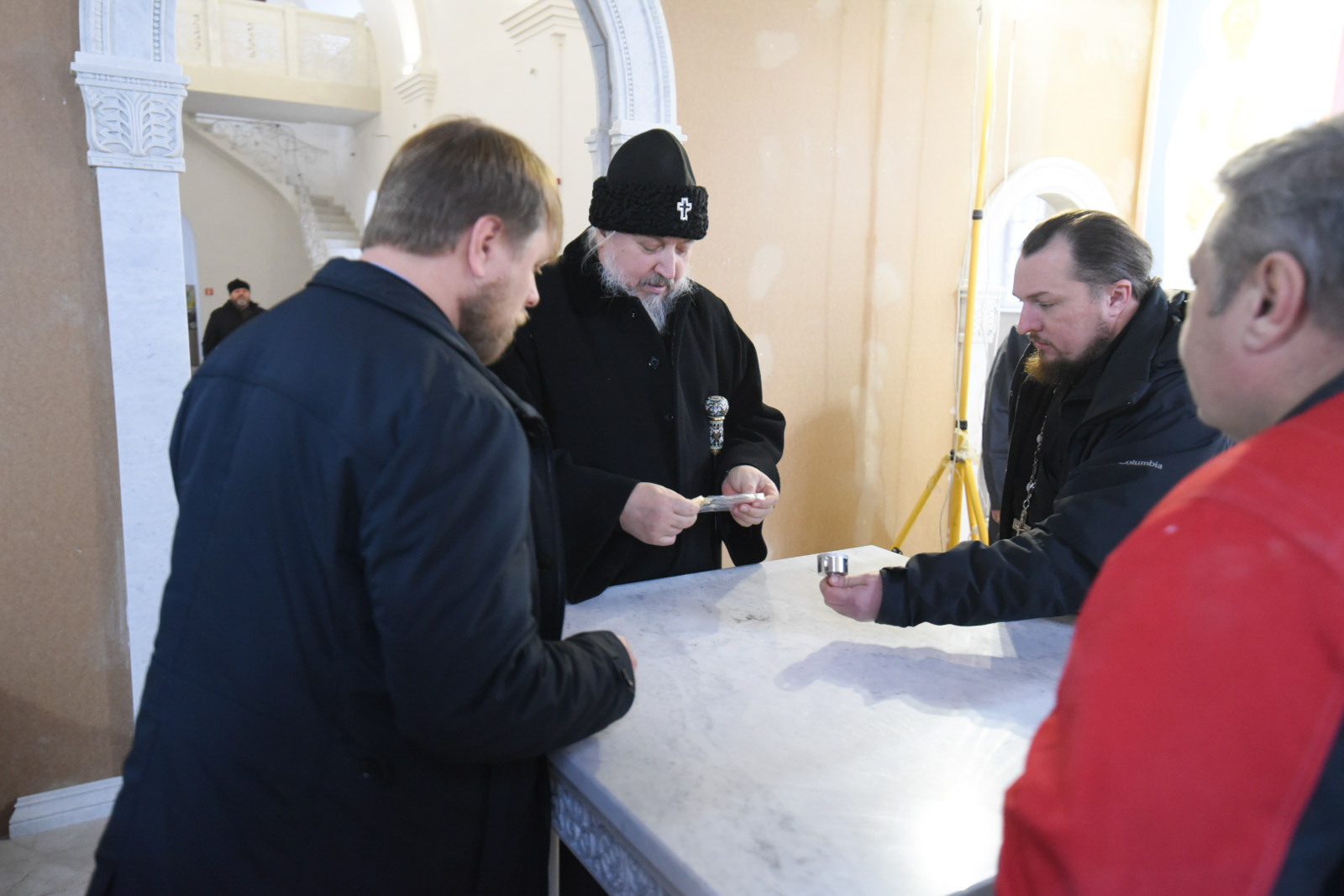 Настоятель прихода иерей Вячеслав Рябица ознакомил владыку с ходом ремонтно-строительных работ и состоянием дел на приходе.