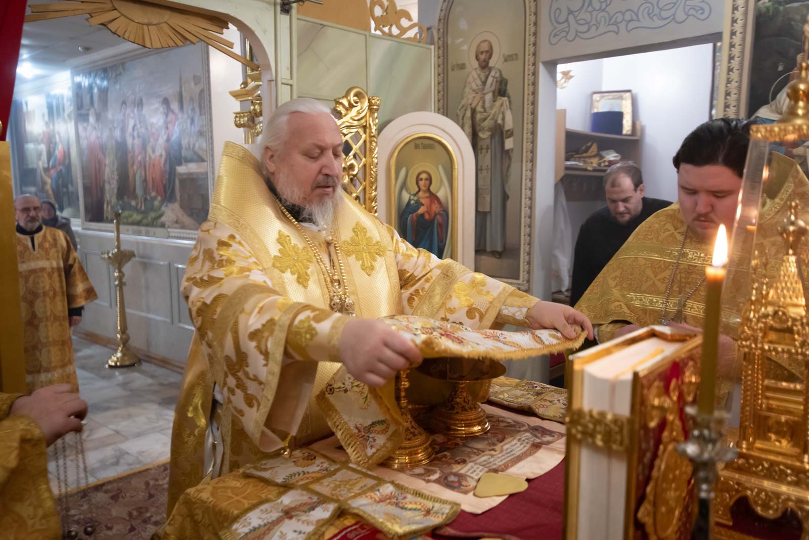 По окончании богослужения Высокопреосвященнейший Стефан поздравил причастников с принятием Святых Христовых Таин и обратился к молящимся со словами архипастырского назидания.