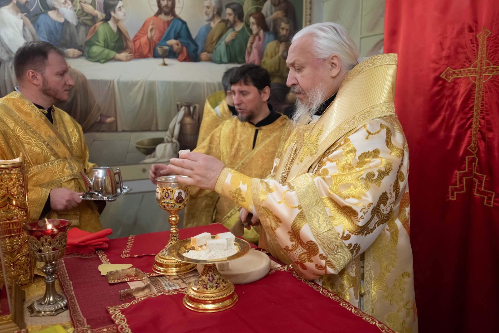 Божественную литургию 24 февраля 2025 года, в понедельник сырной седмицы, Высокопреосвященнейший Стефан, архиепископ Гомельской и Жлобинский, совершил в криптовом храме Петро-Павловского кафедрального собора, освященном в честь святой равноапостольной Марии Магдалины.