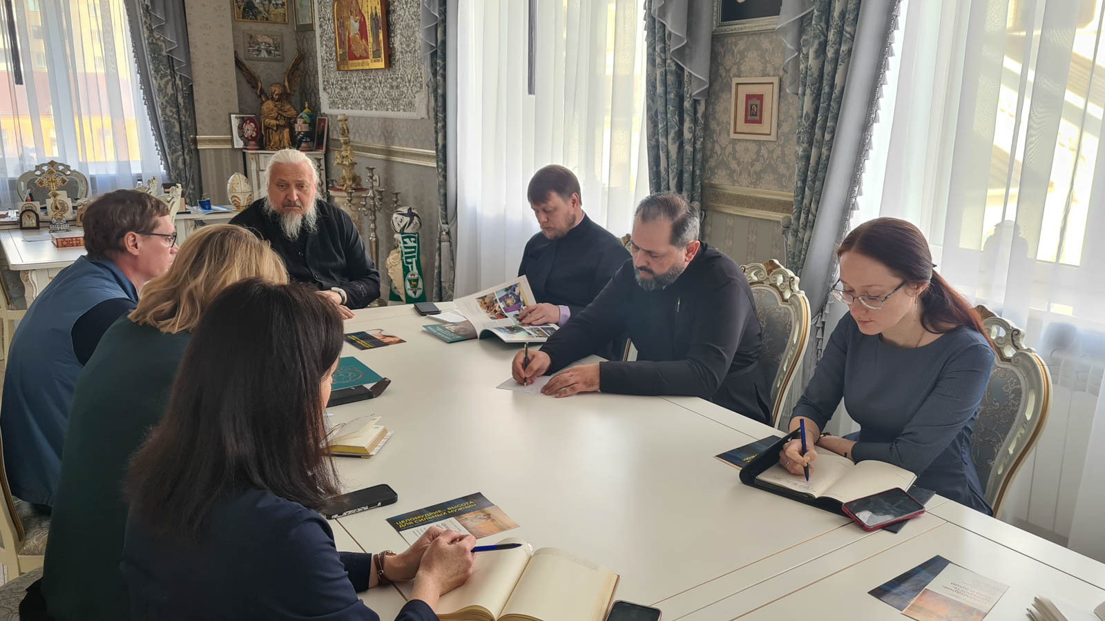 26 февраля 2025 года в стенах Гомельского епархиального управления состоялась очередная рабочая встреча архиепископа Гомельского и Жлобинского Стефана с директором социально-просветительского учреждения «Центр поддержки семьи, материнства и детства «Покрова» Зубенко А.В.