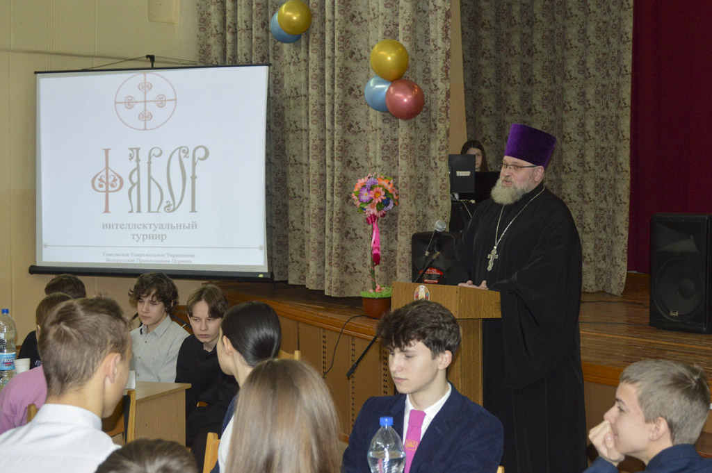 Открывая Турнир, архиепископ Гомельский и Жлобинский Стефан поприветствовал всех участников игры, благословил присутствующих и пожелал всем мира, любви и добра, а также отметил, что у ребят есть уникальная возможность проявить свои знания о Церкви и об Отечестве в рамках интеллектуального турнира.