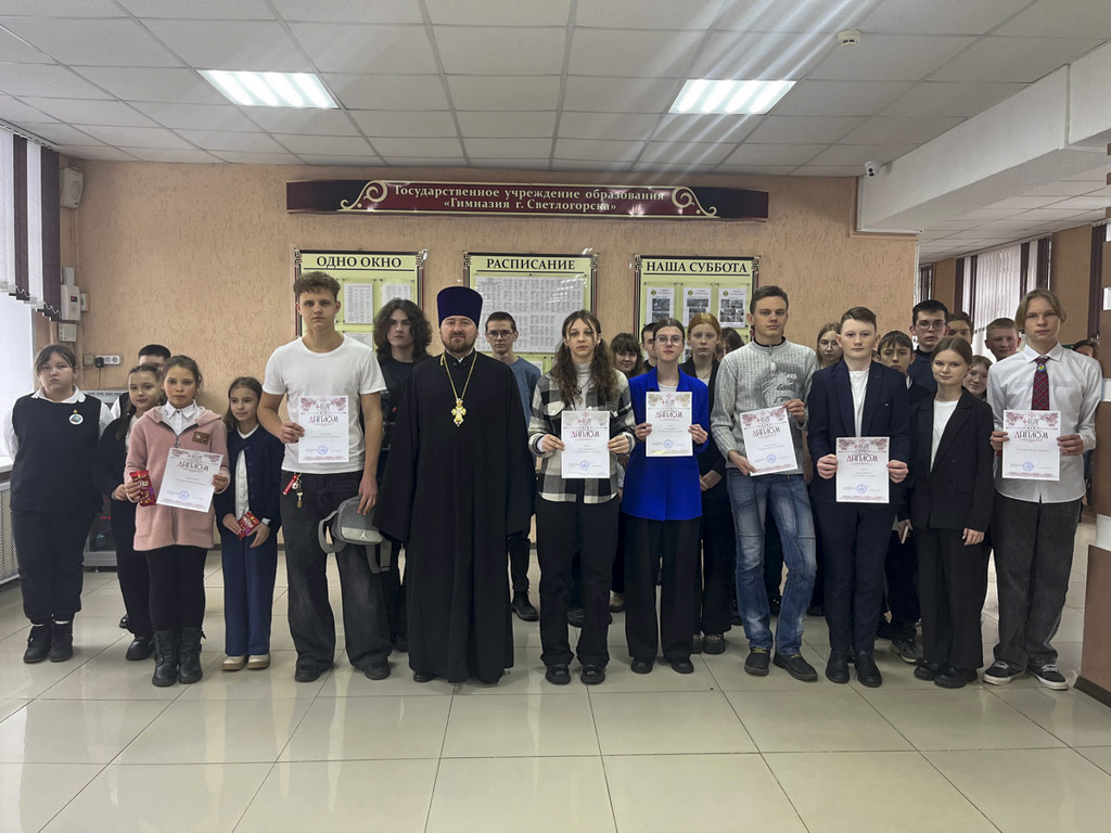 В г. Гомеле Турнир проходил на базе ГУО «Гимназия № 46 г. Гомеля имени Блеза Паскаля», где приняло участие 16 команд. В состав судейской бригады в г.Гомеле вошли настоятель прихода храма святителя Николая Чудотворца иерей Станислав Смоляк, педагог и руководитель Гомельского клуба интеллектуальных игр «Белая рысь» Климович Т.В., методист ГУ «Гомельский городской учебно-методический кабинет» Ведюн Н.Г., методист отдела образования, спорта и туризма администрации Советского района г.Гомеля Маркоцинская Т.С., координатор отдела религиозного образования Гомельской епархии Хомец С.А.