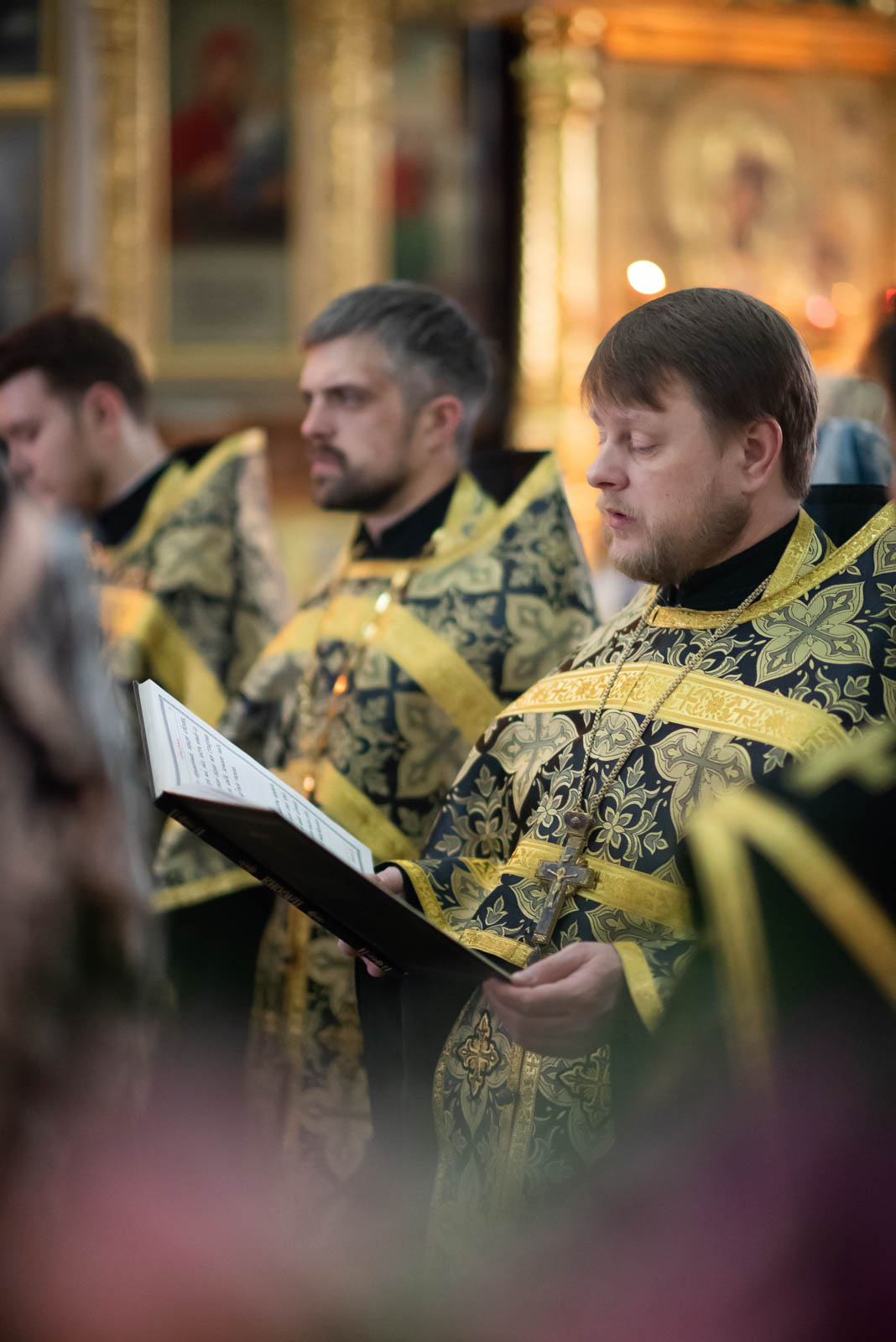 Высокопреосвященнейшему сослужили секретарь Гомельской епархии протоиерей Георгий Алампиев и духовенство собора.