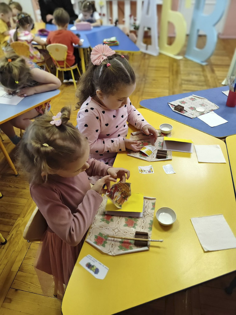 Воспитанники не только познакомились с православными книгами, но и узнали о создателях славянской азбуки святых равноапостольных Кирилле и Мефодии, попробовали стать летописцами, изготовили своими руками книжки-малышки, узнали о создании первых книг на глиняных дощечках, бересте.