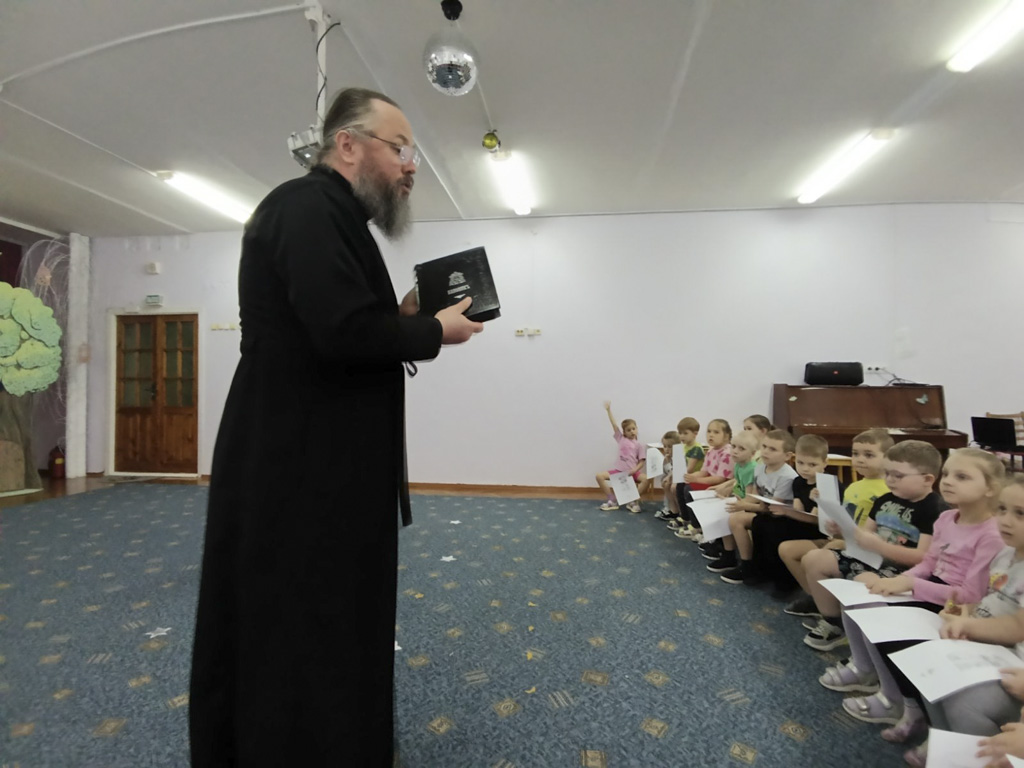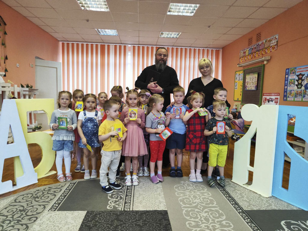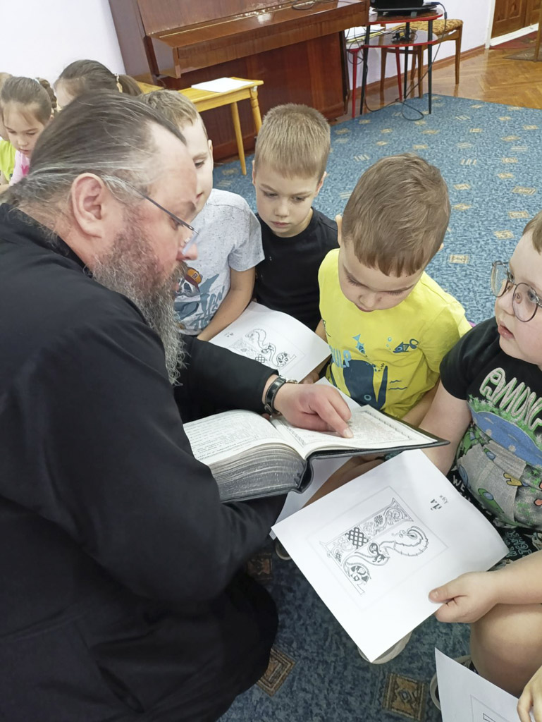 Дети с большим интересом слушали диакона Павла, воспитателей, рассматривали странички православных книг и даже пытались найти и прочитать знакомые слова и буквы.
