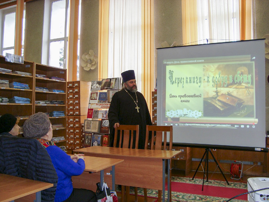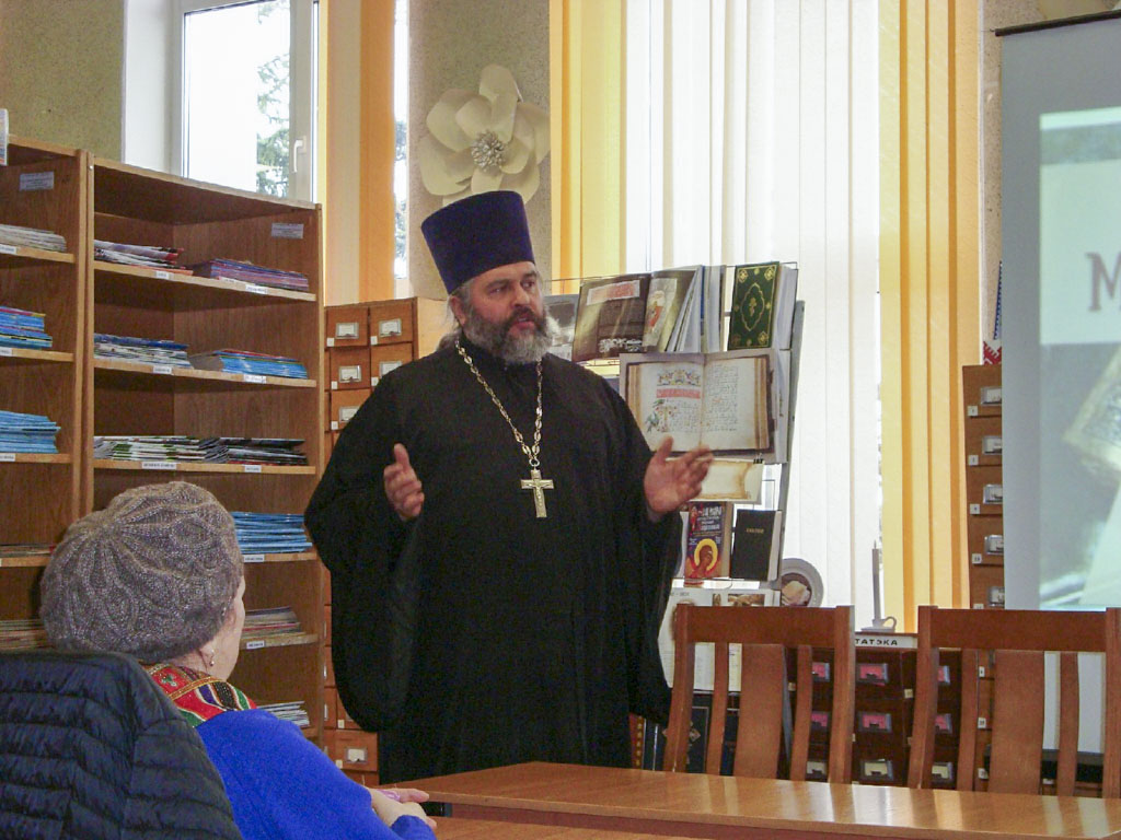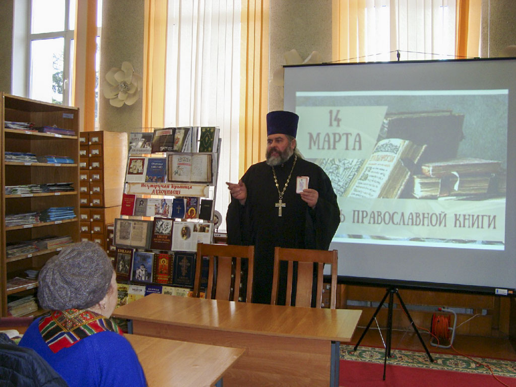 14 марта, в День православной книги, в Ветковской районной библиотеке состоялось тематическое мероприятие с участием священнослужителей Ветковского района. В нём приняли участие настоятель прихода храма святителя Николая Чудотворца в агрогородке Даниловичи протоиерей Андрей Булацкий и клирик храма Преображения Господня в городе Ветке иерей Сергий Ильичёв.