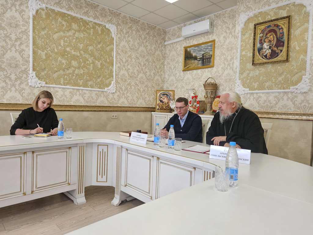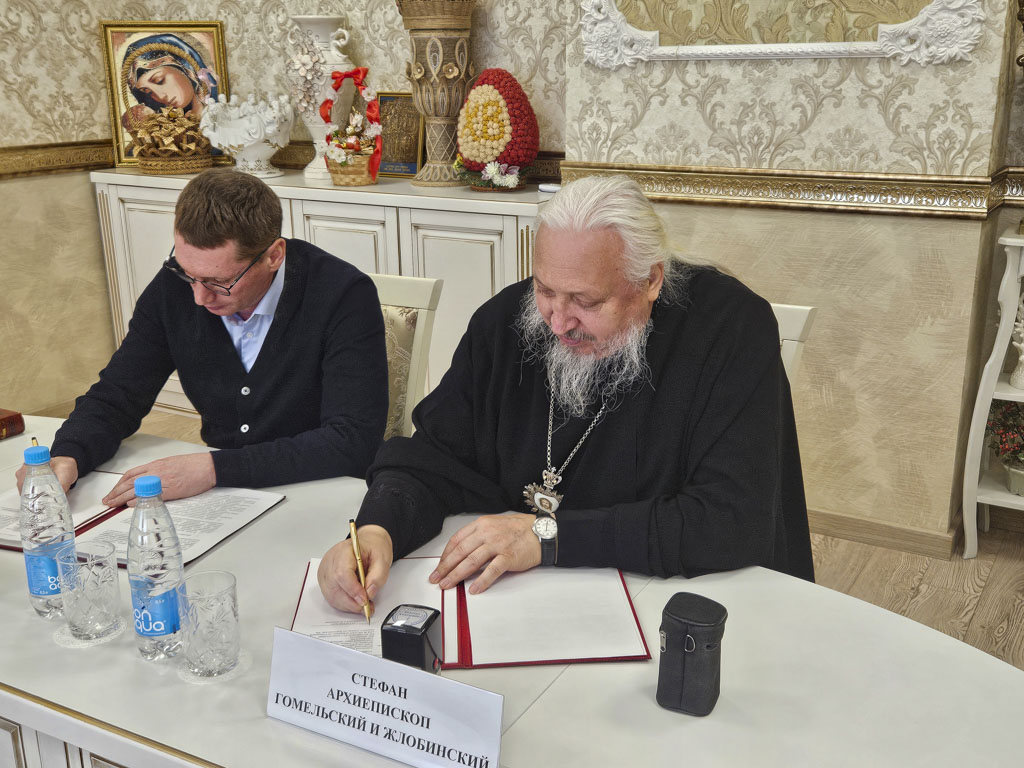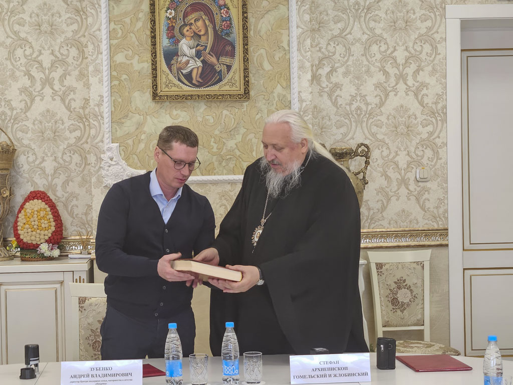 18 марта 2025 года в стенах Гомельского епархиального управления состоялась рабочая встреча архиепископа Гомельского и Жлобинского Стефана с директором социально-просветительского учреждения «Центр поддержки семьи, материнства и детства «Покрова» Зубенко А.В., в ходе которой была подписано соглашение о сотрудничестве между Гомельской епархией и СПУ «Центр поддержки семьи, материнства и детства «Покрова».