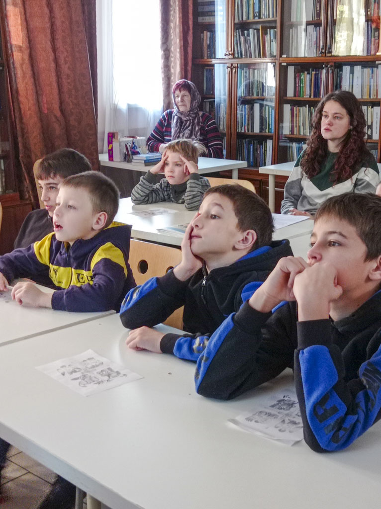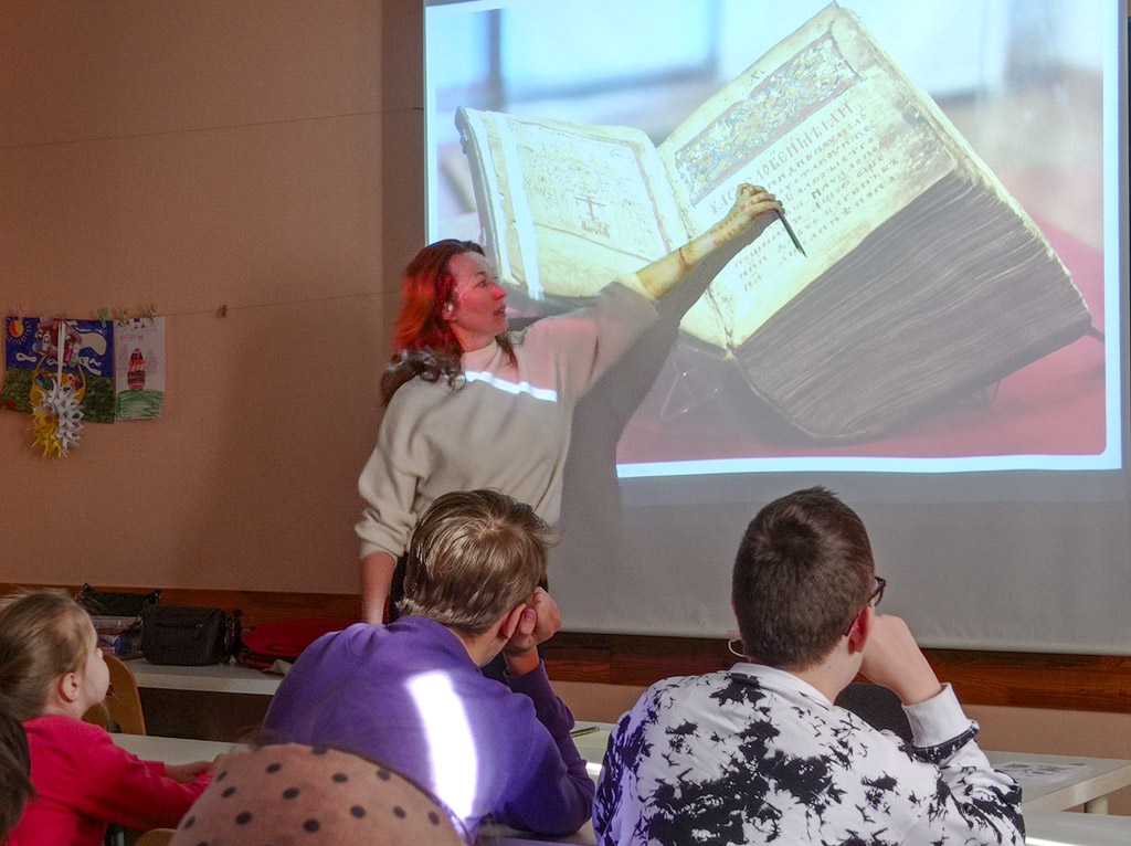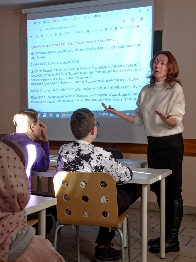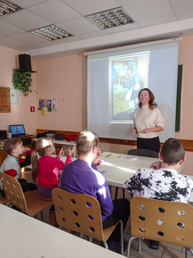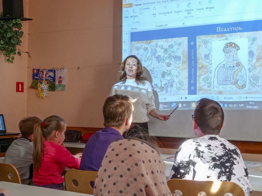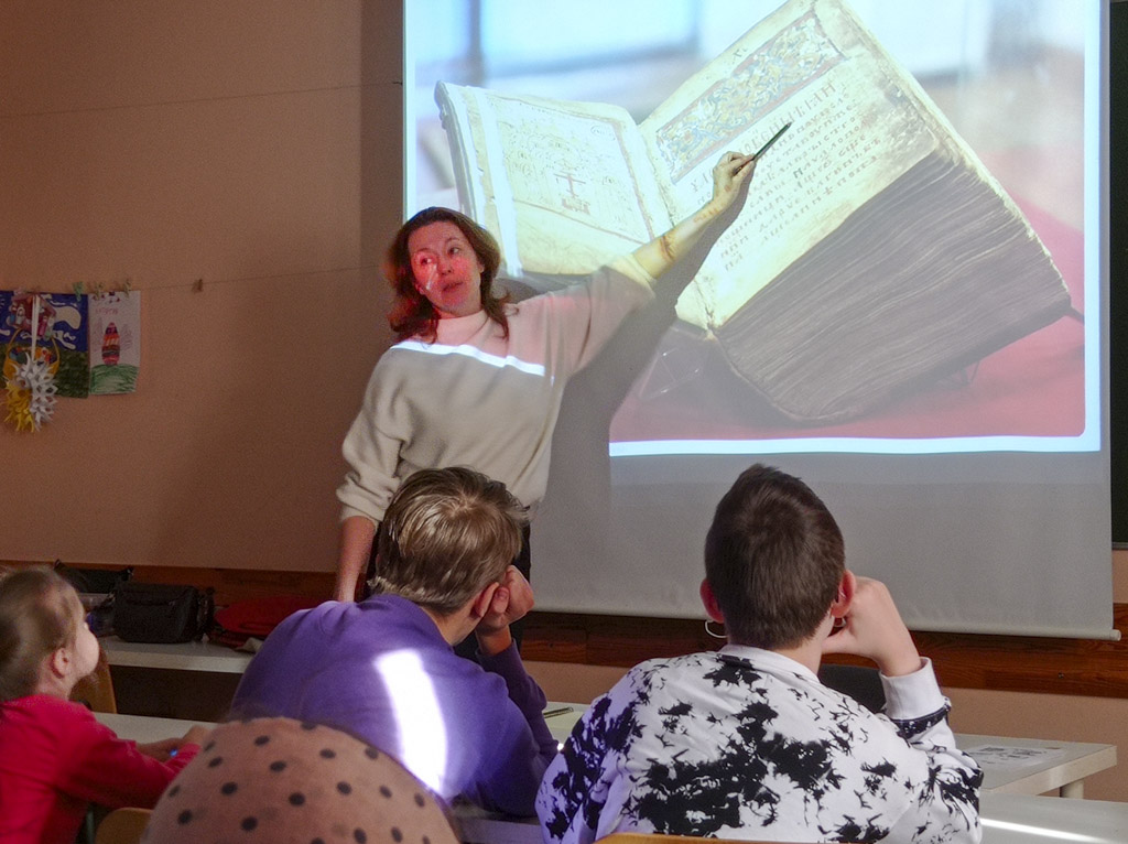 Во время занятия ребята узнали, что в древности монастыри играли важную роль в просвещении. Здесь переписывались богослужебные и образовательные книги, формировались библиотеки, велась летопись, а при монастырях действовали школы. Для многих обучение в таких школах было единственной возможностью освоить грамоту, так как доступ к книгам и учению вне монастырских стен был ограничен.
