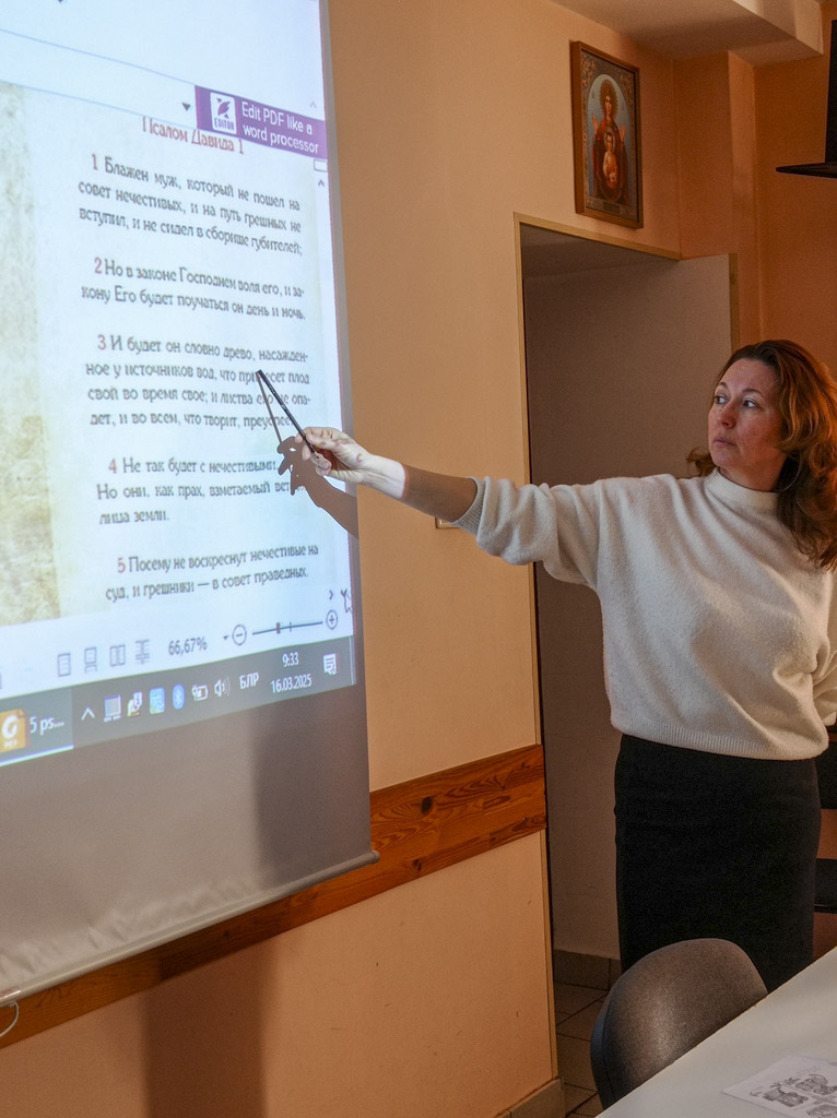 Особый интерес вызвал рассказ о первых учебных книгах – Азбуке, Часослове и Псалтири, которые использовались для начального обучения. Дети узнали о том, что Псалтирь не только была книгой молитв, но и служила основой для развития памяти и письма. В ходе занятия говорилось и о первопечатнике Иване Фёдорове, его первом издании – «Апостоле» (1564) – и о том, как печатное дело изменило распространение знаний.
