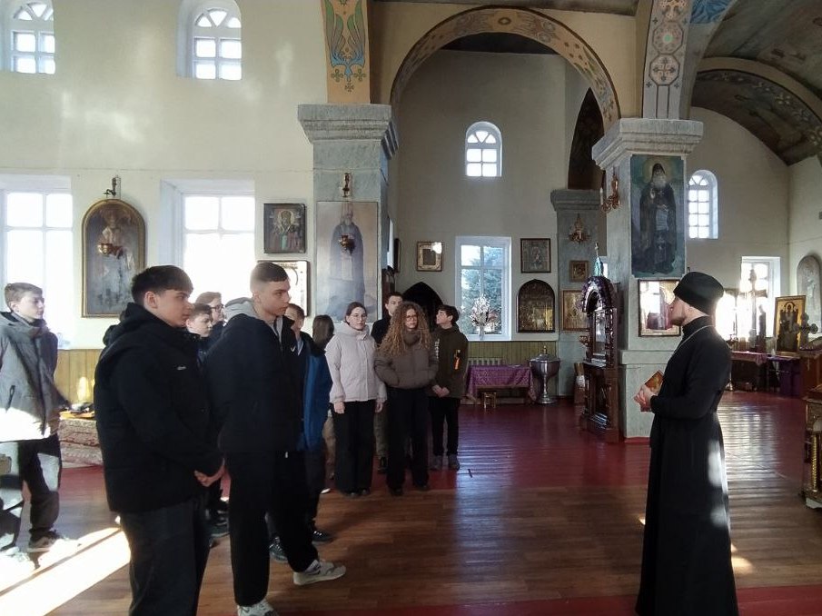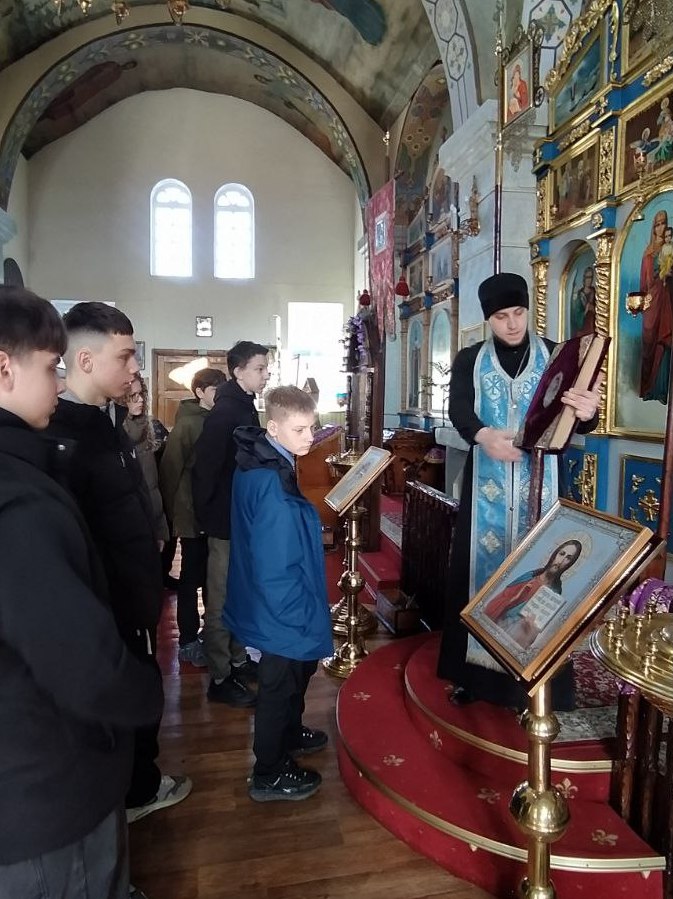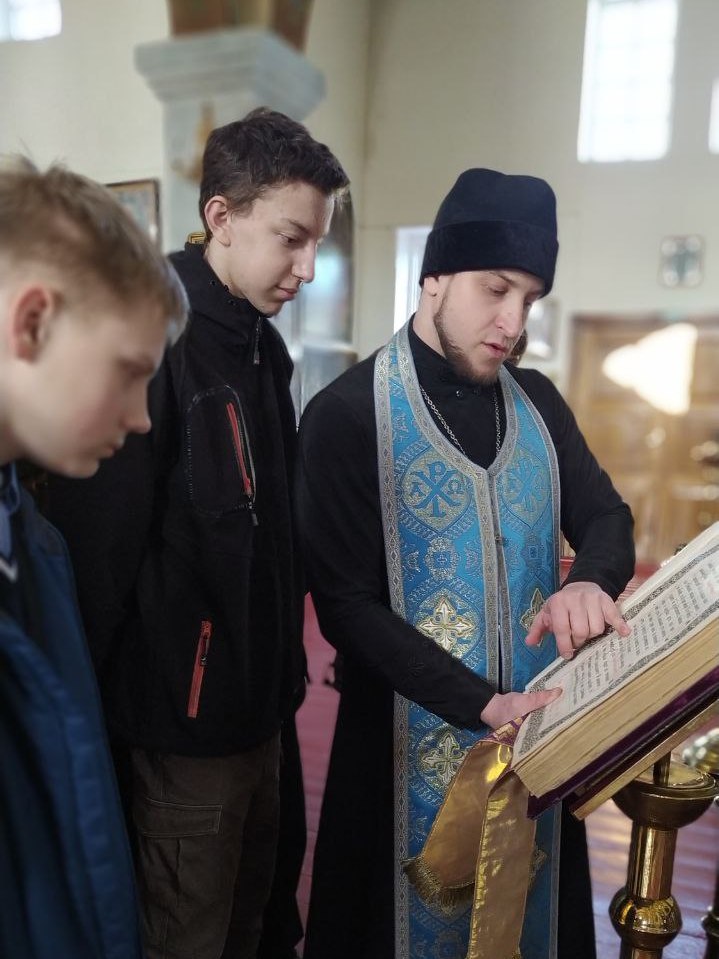 Священник рассказал молодым людям о значении храма в жизни верующего человека. Он подчеркнул, что Церковь — это место, где человек обращается к Богу, а православная вера — не просто религиозная принадлежность, а образ жизни, основанный на любви к ближнему.