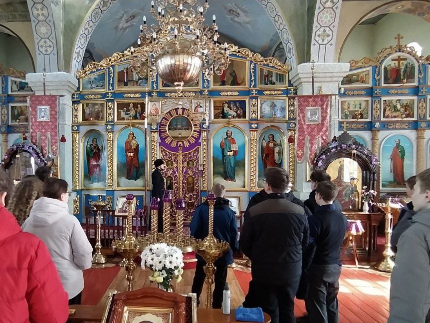 18 марта старшеклассники из военно-патриотического клуба «На страже» вместе с руководителем посетили храм святителя Николая в городе Добруше. Встречу провёл помощник благочинного по религиозному образованию и катехизации иерей Никита Кулиткин.