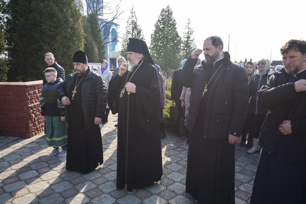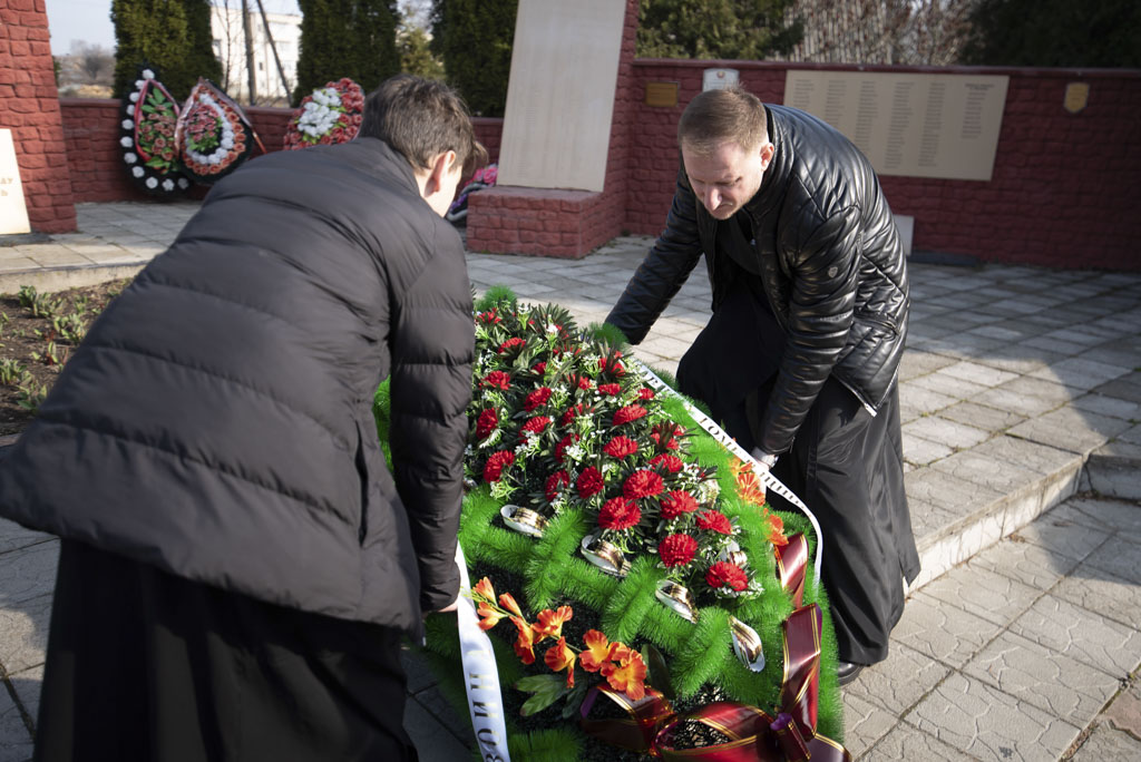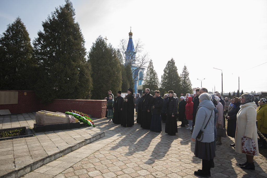После завершения богослужения архиепископ Стефан в сослужении духовенства и в сопровождении прихожан направился к братскому захоронению, расположенному неподалёку от храма. Там была совершена заупокойная лития и возложены живые цветы — в знак общей народной памяти о жертвах Хатынской трагедии и тысячах сожжённых деревень.
