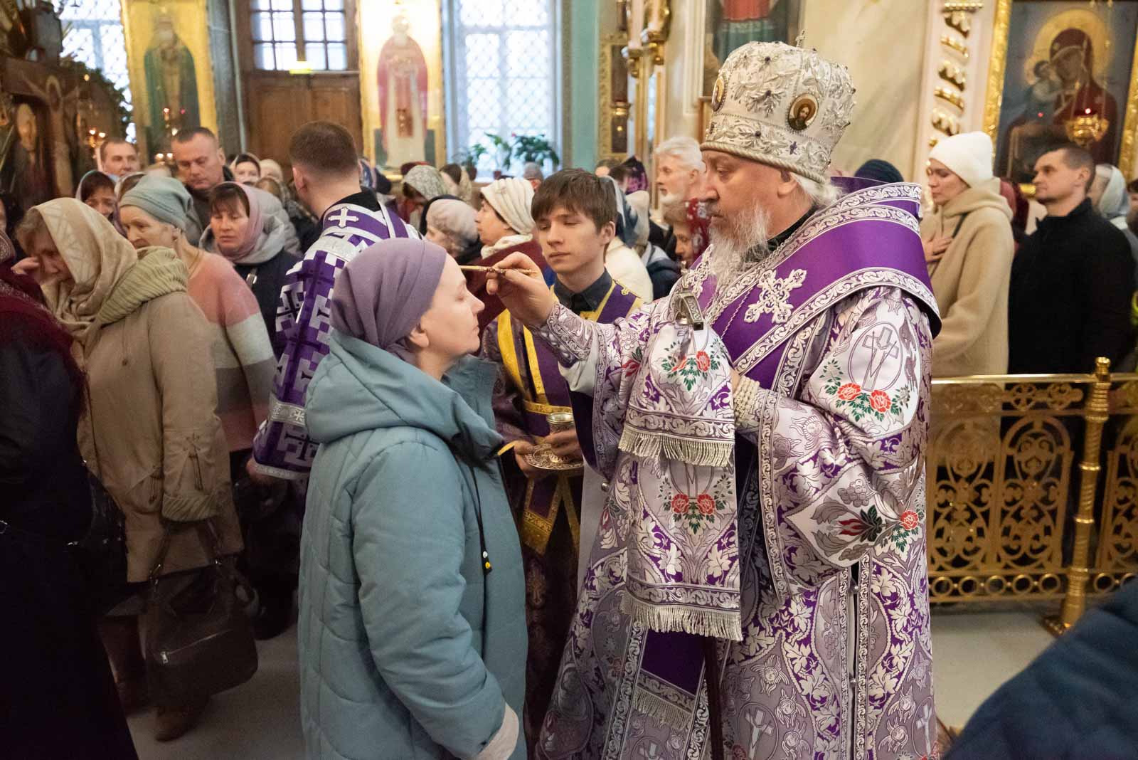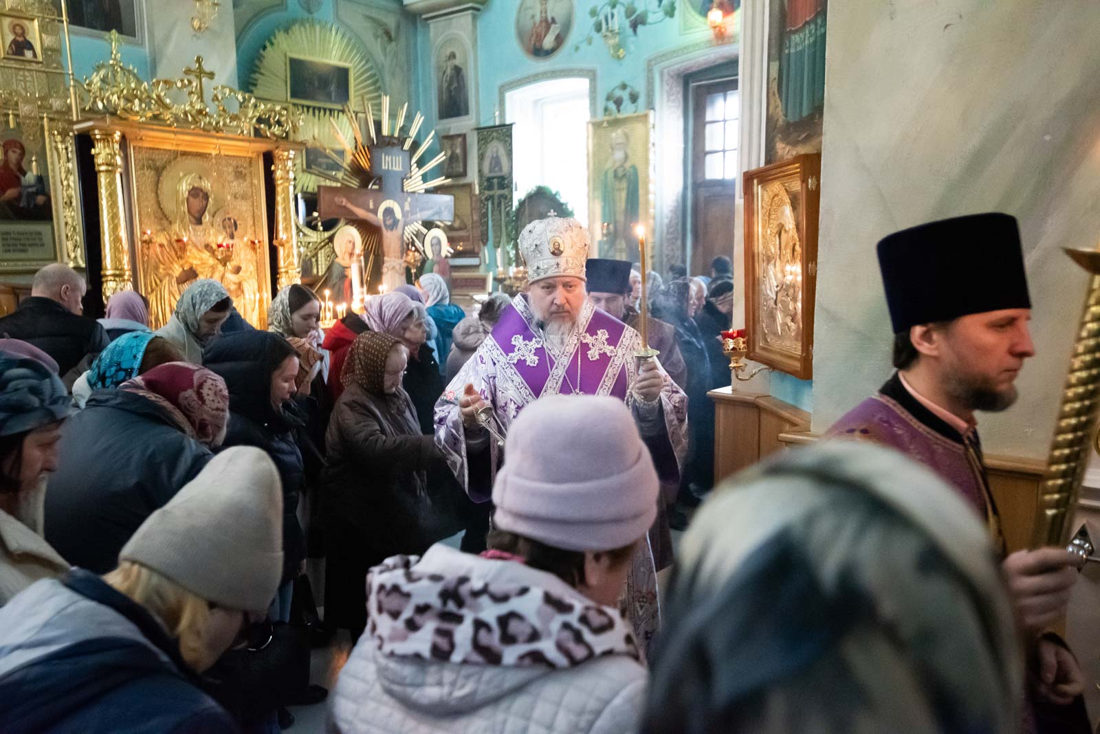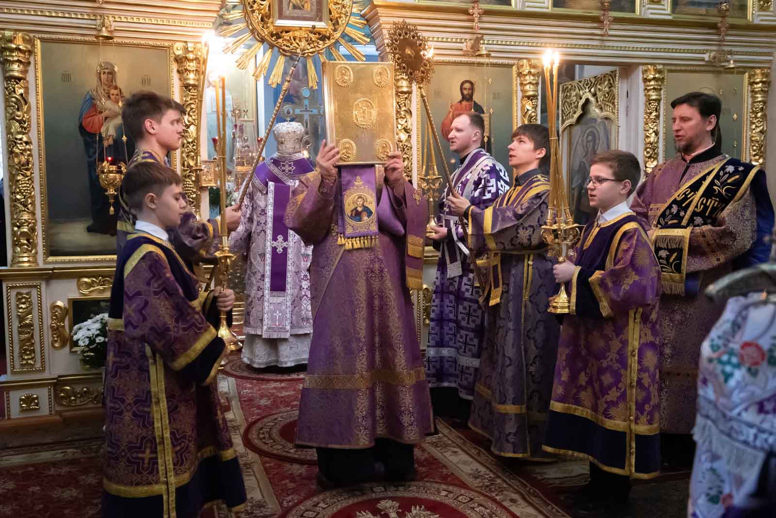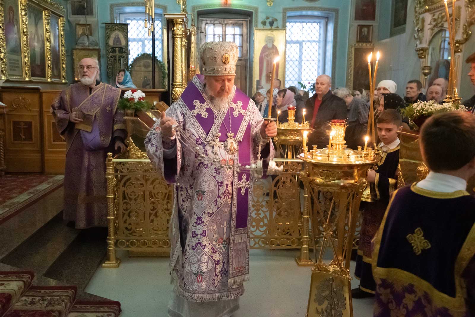 Всенощное бдение 22 марта 2025 года, в канун Недели 3-й Великого Поста, Крестопоклонной, Высокопреосвященнейший Стефан, архиепископ Гомельский и Жлобинский, совершил в Петро-Павловском кафедральном соборе г.Гомеля.
