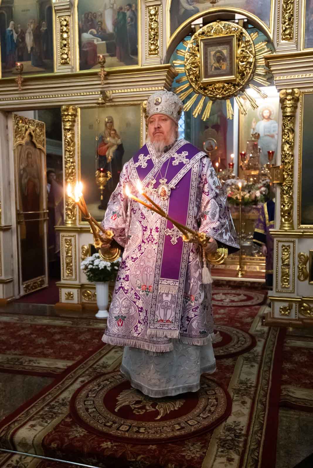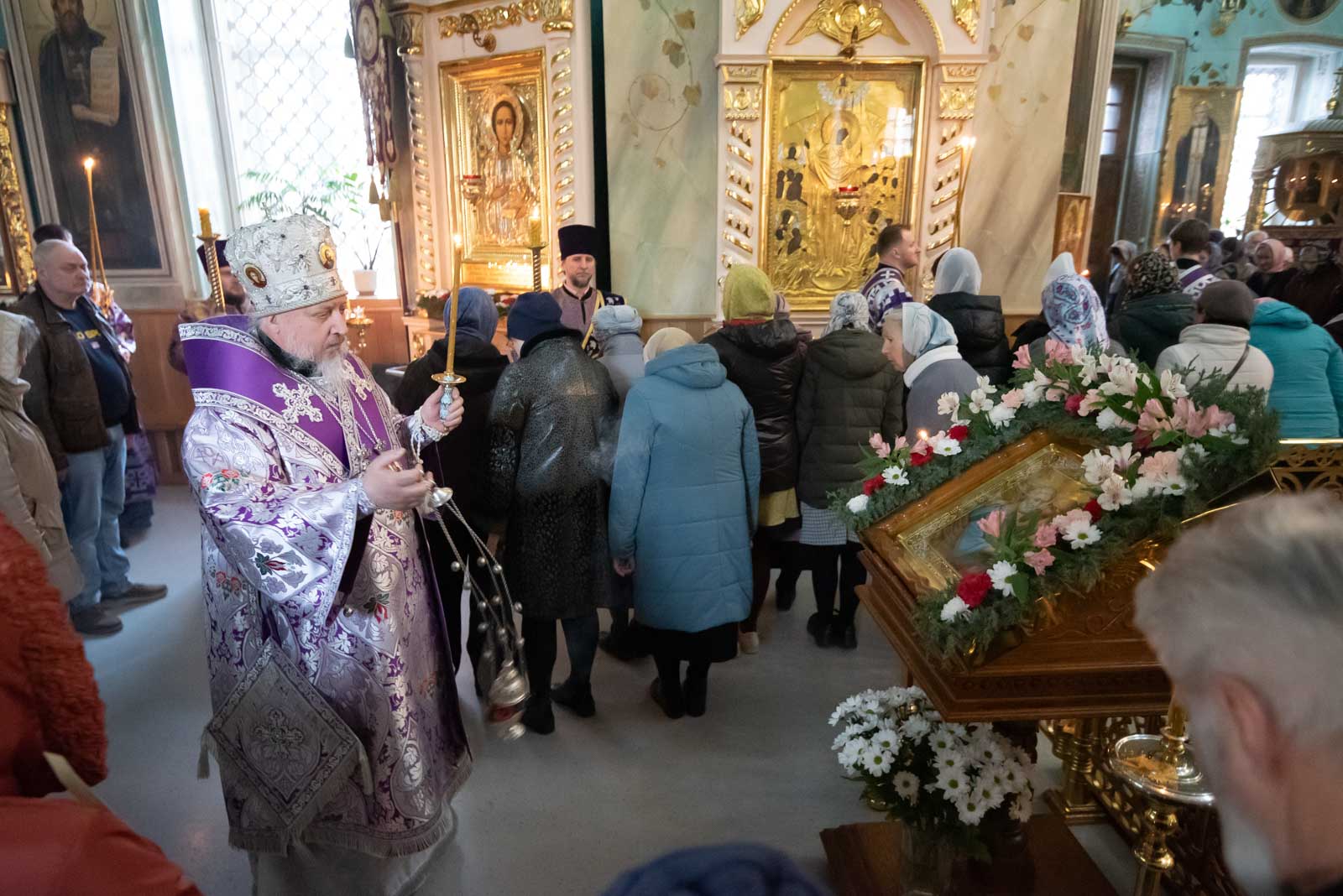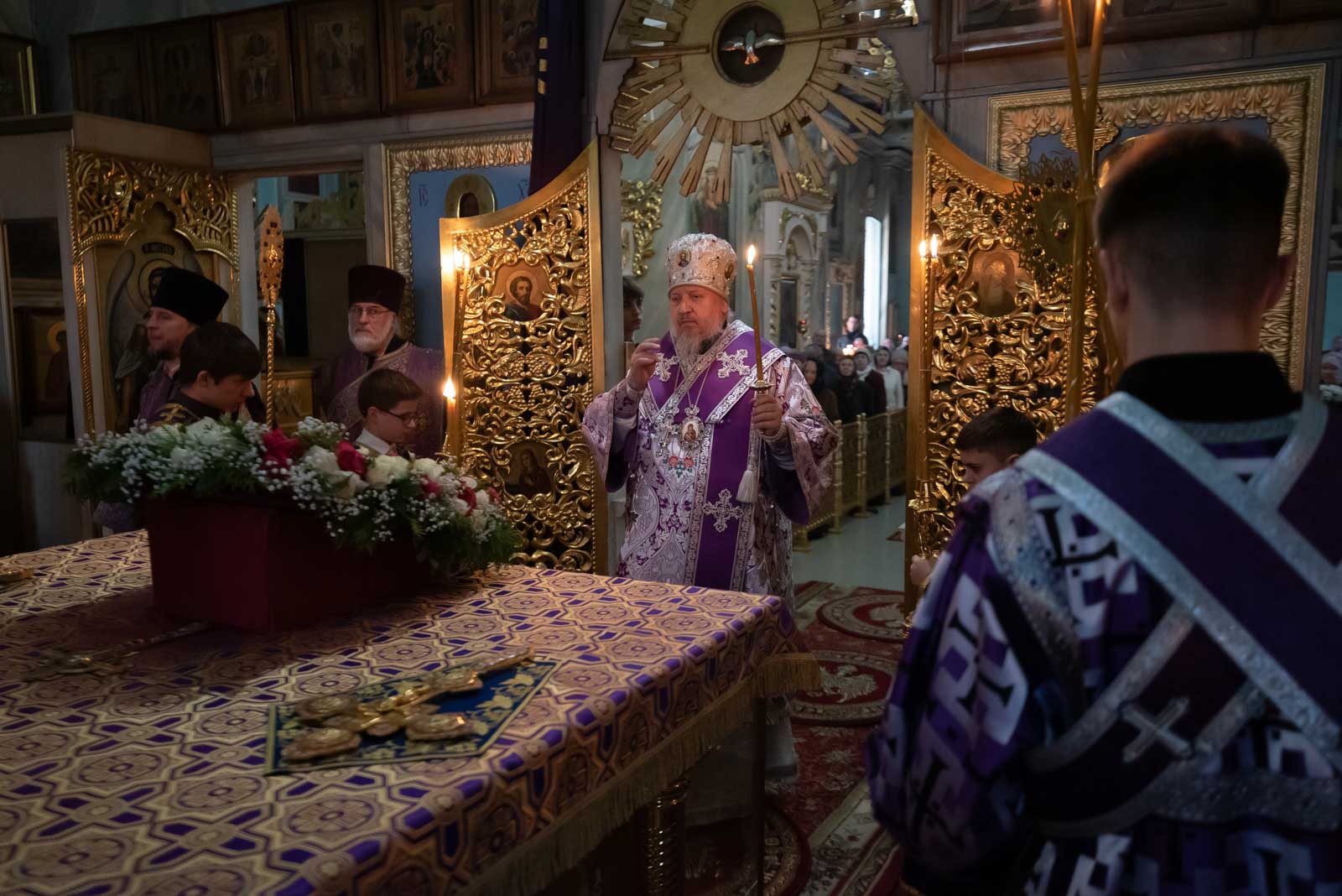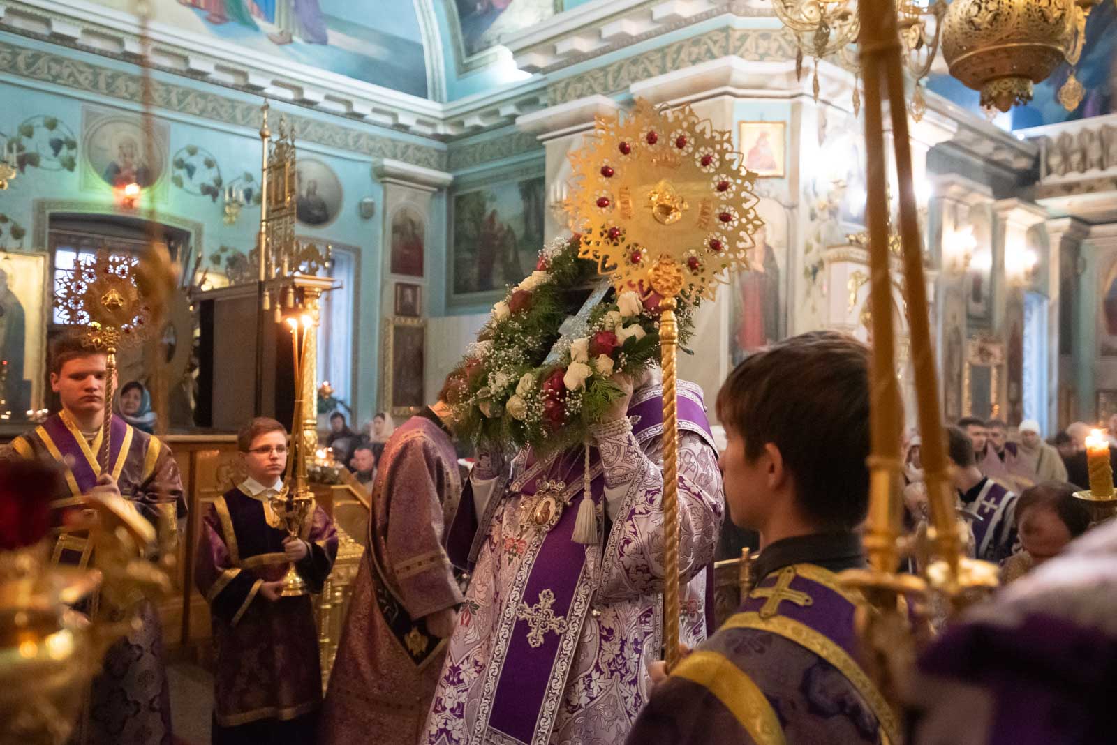 Всенощное бдение 22 марта 2025 года, в канун Недели 3-й Великого Поста, Крестопоклонной, Высокопреосвященнейший Стефан, архиепископ Гомельский и Жлобинский, совершил в Петро-Павловском кафедральном соборе г.Гомеля.