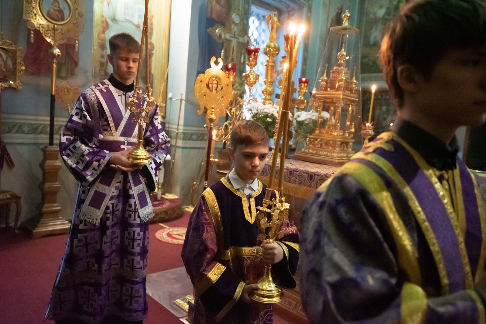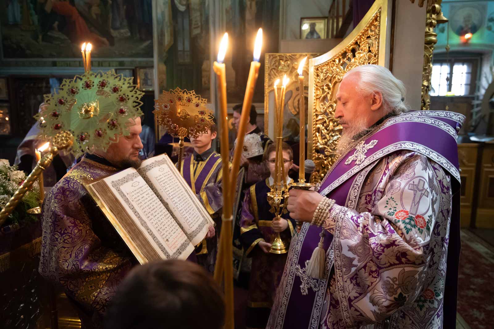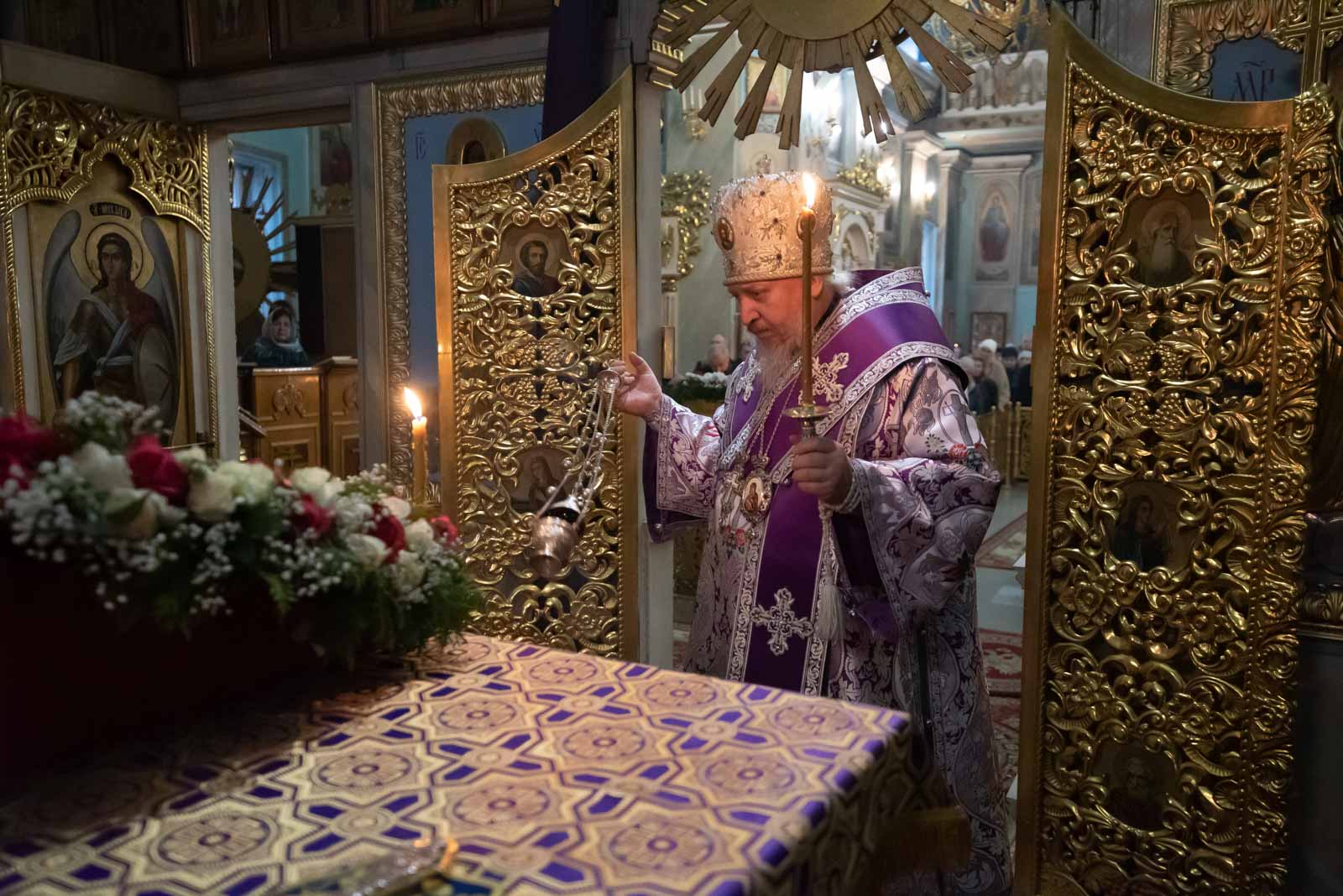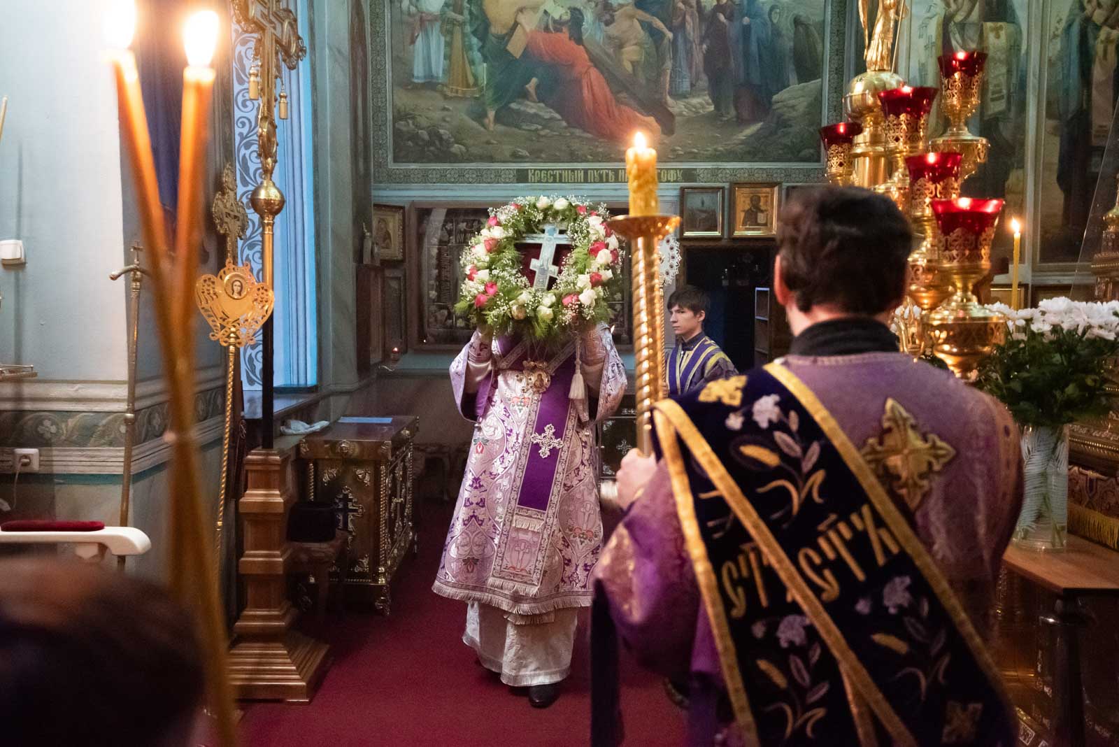 Всенощное бдение 22 марта 2025 года, в канун Недели 3-й Великого Поста, Крестопоклонной, Высокопреосвященнейший Стефан, архиепископ Гомельский и Жлобинский, совершил в Петро-Павловском кафедральном соборе г.Гомеля.